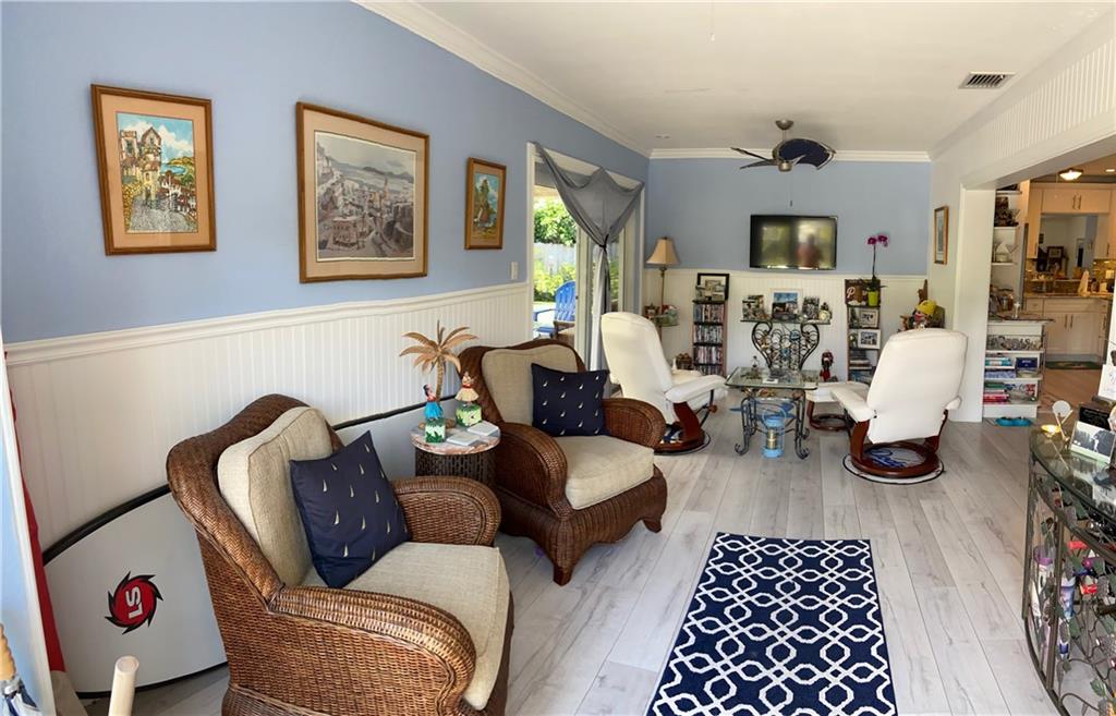This Home is a amazing Tropical Paradise that has been completely updated. Large Corner Lot, Bright White Open Kitchen, Stainless Steal Appliances, Beautiful flooring that compliments the beach style of this home. This 2 Bedroom 1 Bath is great for entertaining as the back yard has a putting green and a Tiki Style Bar.