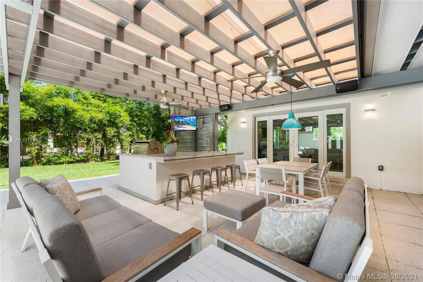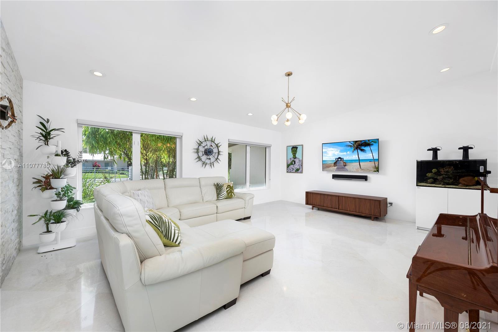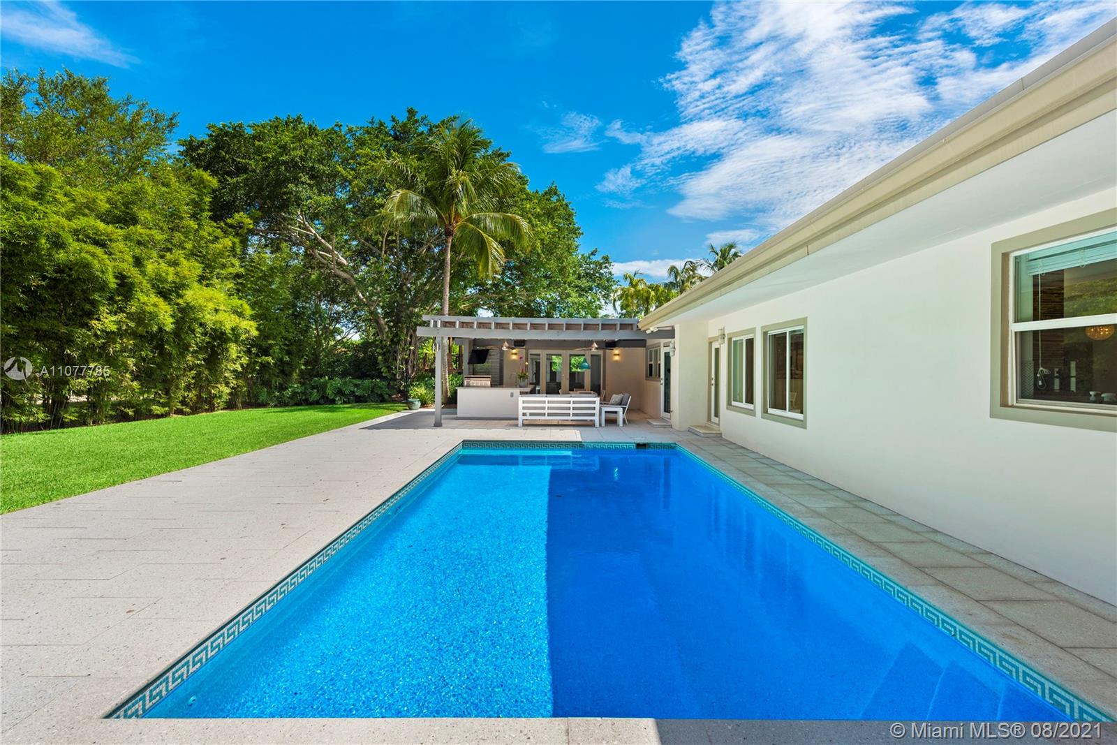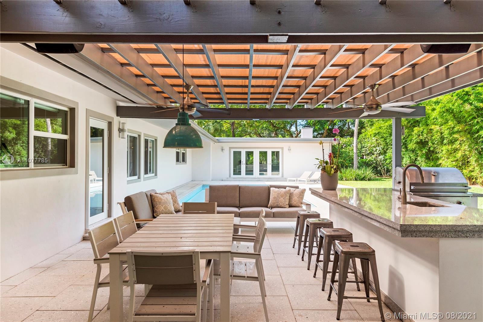 This striking Northeast Pinecrest home’s beautiful design integrates luxurious living with energy efficiency and sustainability. Set upon a 33,671 sq ft lot with interior ceilings up to 10.5 ft, every detail is perfectly appointed. The open format kitchen features solid bamboo cabinetry, Thermador appliances, a large island and double oven. Swoon-worthy marble bathrooms with custom palm wood cabinetry and the large owner’s suite with deep walk-in closet are a dream. Outdoors, the sparkling saltwater pool deck, herb garden, and outdoor zip-line are sure to delight. Equipped with 10.8kW solar system, impact windows, security cameras, three gates, and an Energy Star cool roof still under warranty. Renowned Pinecrest Elementary, Palmetto Middle / High School Districts.