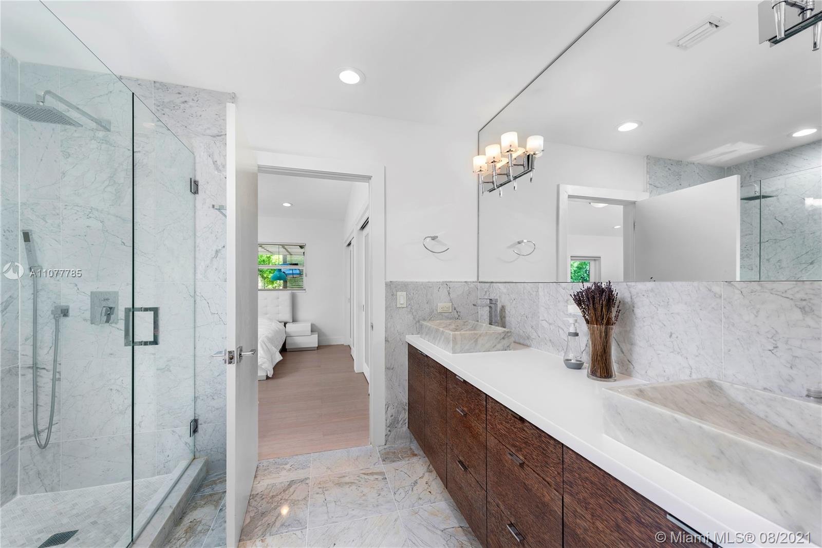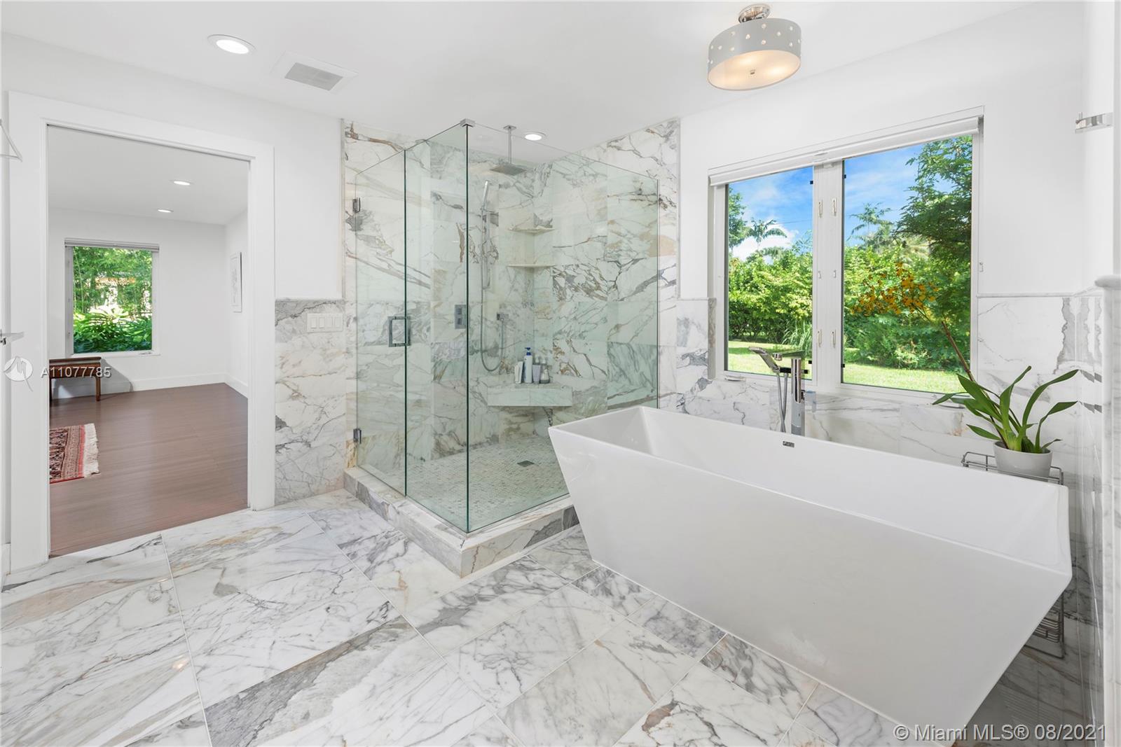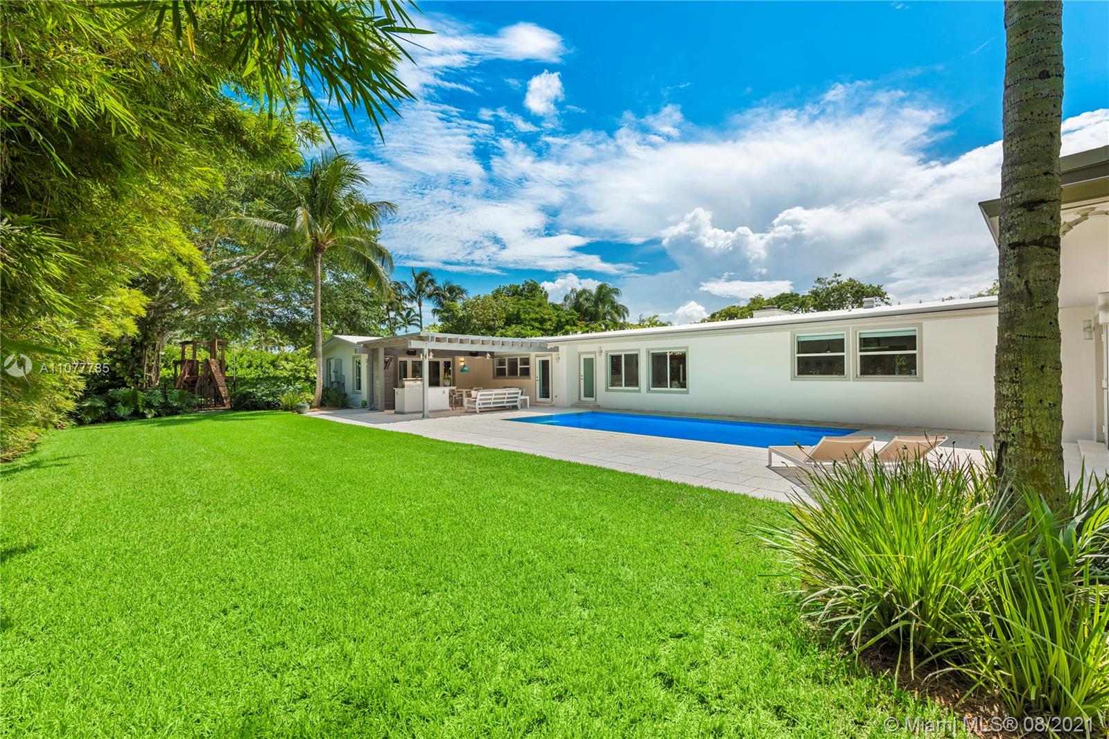 This striking Northeast Pinecrest home’s beautiful design integrates luxurious living with energy efficiency and sustainability. Set upon a 33,671 sq ft lot with interior ceilings up to 10.5 ft, every detail is perfectly appointed. The open format kitchen features solid bamboo cabinetry, Thermador appliances, a large island and double oven. Swoon-worthy marble bathrooms with custom palm wood cabinetry and the large owner’s suite with deep walk-in closet are a dream. Outdoors, the sparkling saltwater pool deck, herb garden, and outdoor zip-line are sure to delight. Equipped with 10.8kW solar system, impact windows, security cameras, three gates, and an Energy Star cool roof still under warranty. Renowned Pinecrest Elementary, Palmetto Middle / High School Districts.