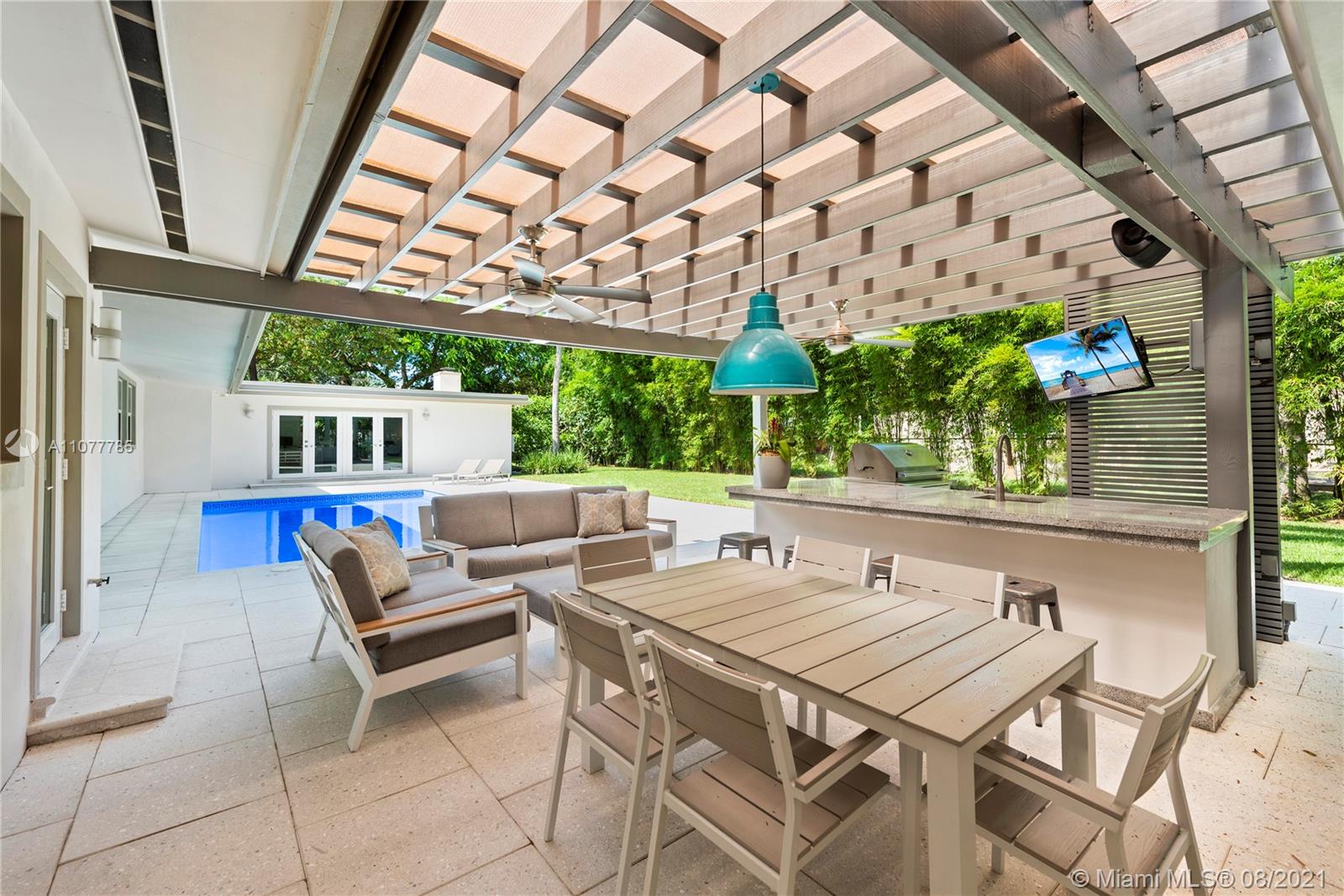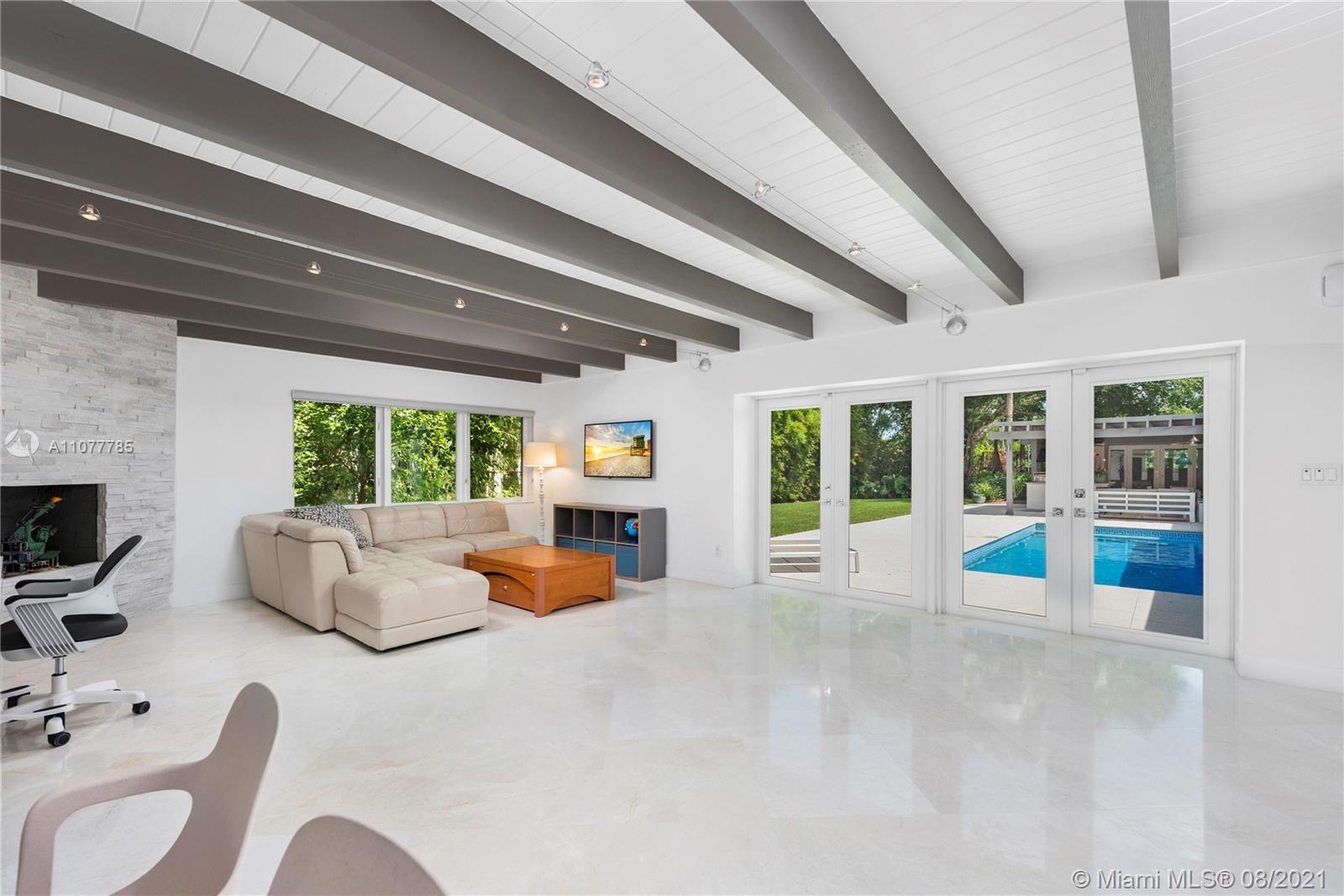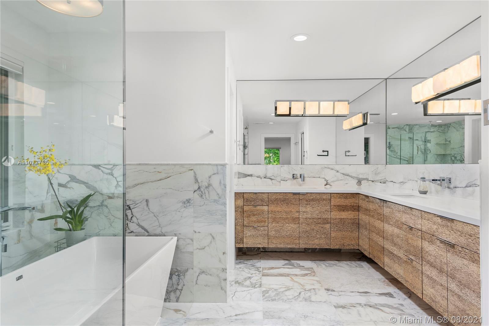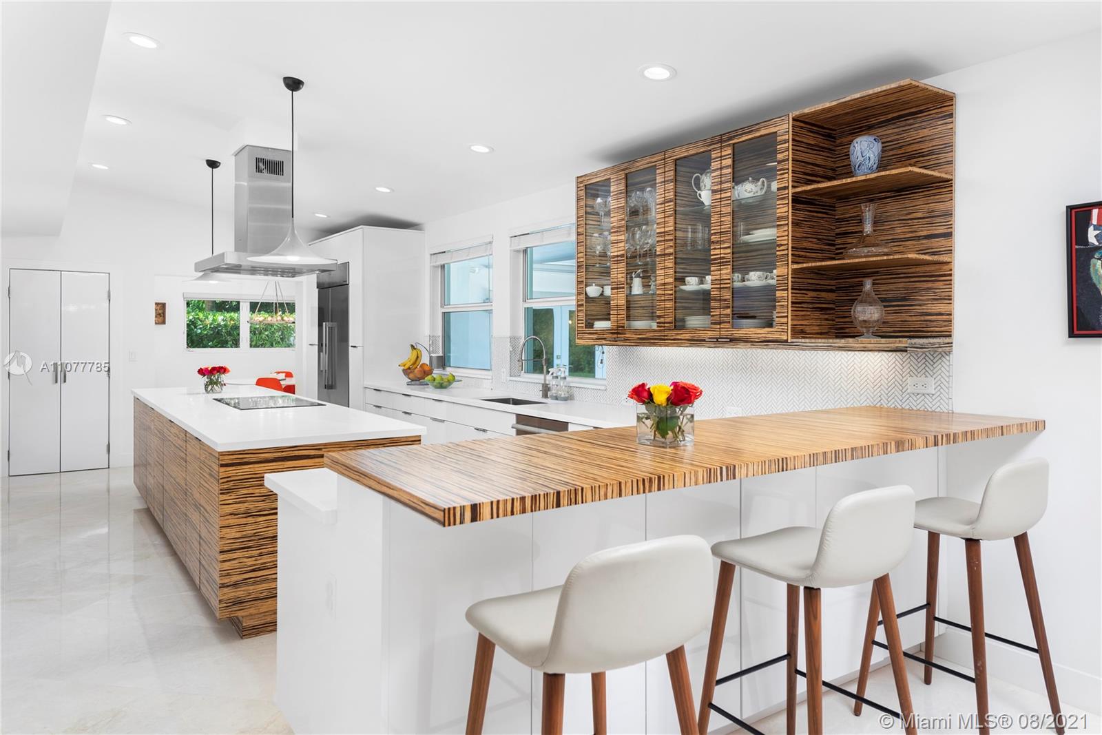 This striking Northeast Pinecrest home’s beautiful design integrates luxurious living with energy efficiency and sustainability. Set upon a 33,671 sq ft lot with interior ceilings up to 10.5 ft, every detail is perfectly appointed. The open format kitchen features solid bamboo cabinetry, Thermador appliances, a large island and double oven. Swoon-worthy marble bathrooms with custom palm wood cabinetry and the large owner’s suite with deep walk-in closet are a dream. Outdoors, the sparkling saltwater pool deck, herb garden, and outdoor zip-line are sure to delight. Equipped with 10.8kW solar system, impact windows, security cameras, three gates, and an Energy Star cool roof still under warranty. Renowned Pinecrest Elementary, Palmetto Middle / High School Districts.