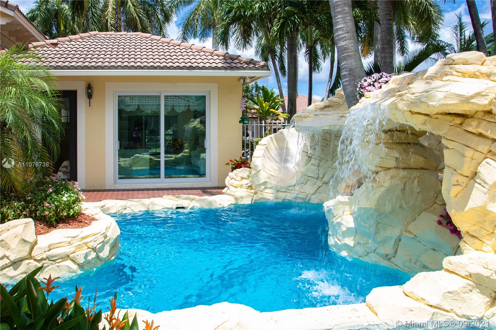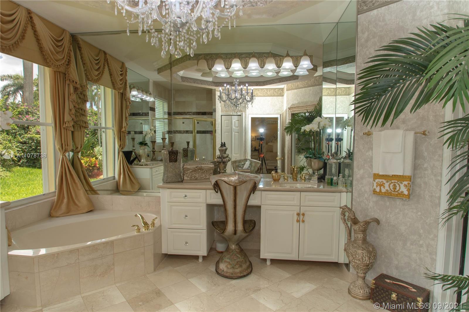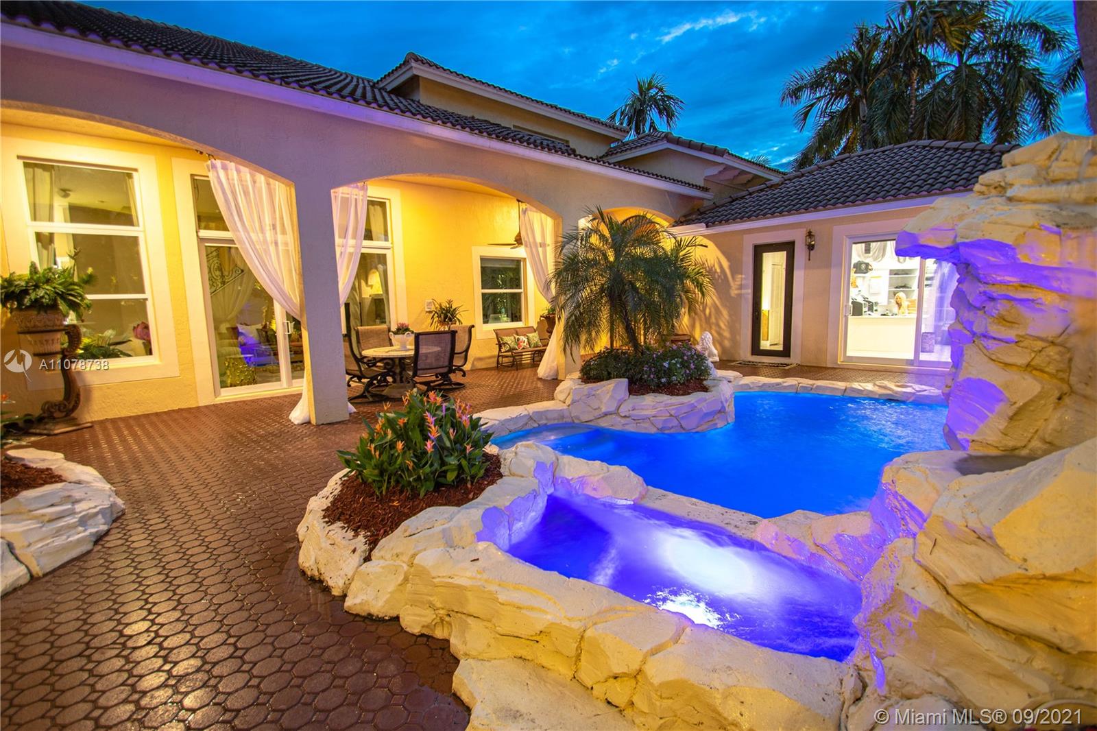 Owners just executed a contract on another property! Furnished! Former Ambry Homes model. An expanded version of the gorgeous Venice model. This unique courtyard home has been remodeled with over $600,000 in upgrades. Professionally designed and decorated with touches of Mediterranean elegance and modern design. Upon entering the home, you will experience an ambiance of elegance and glamour. White Turkish high polished marble floors and fine chandeliers are the first to experience. Then, you will step to a brand new kitchen with marble counters tops imported from Italy. SS appliances, incl. a brand new refrigerator and more. A well-equipped gym, a guest quarters, impact windows, $100K pool, built-in electric generator. Offers with a pre-approval ltr and proof of funds.