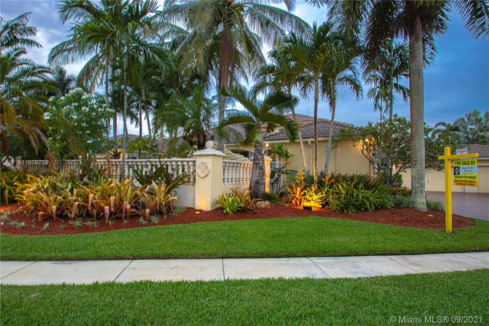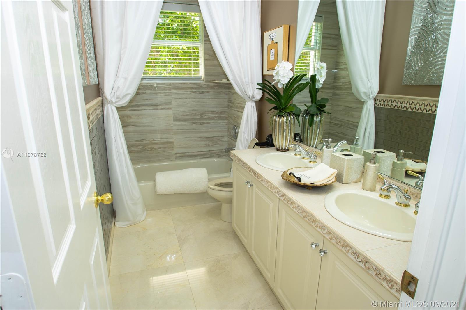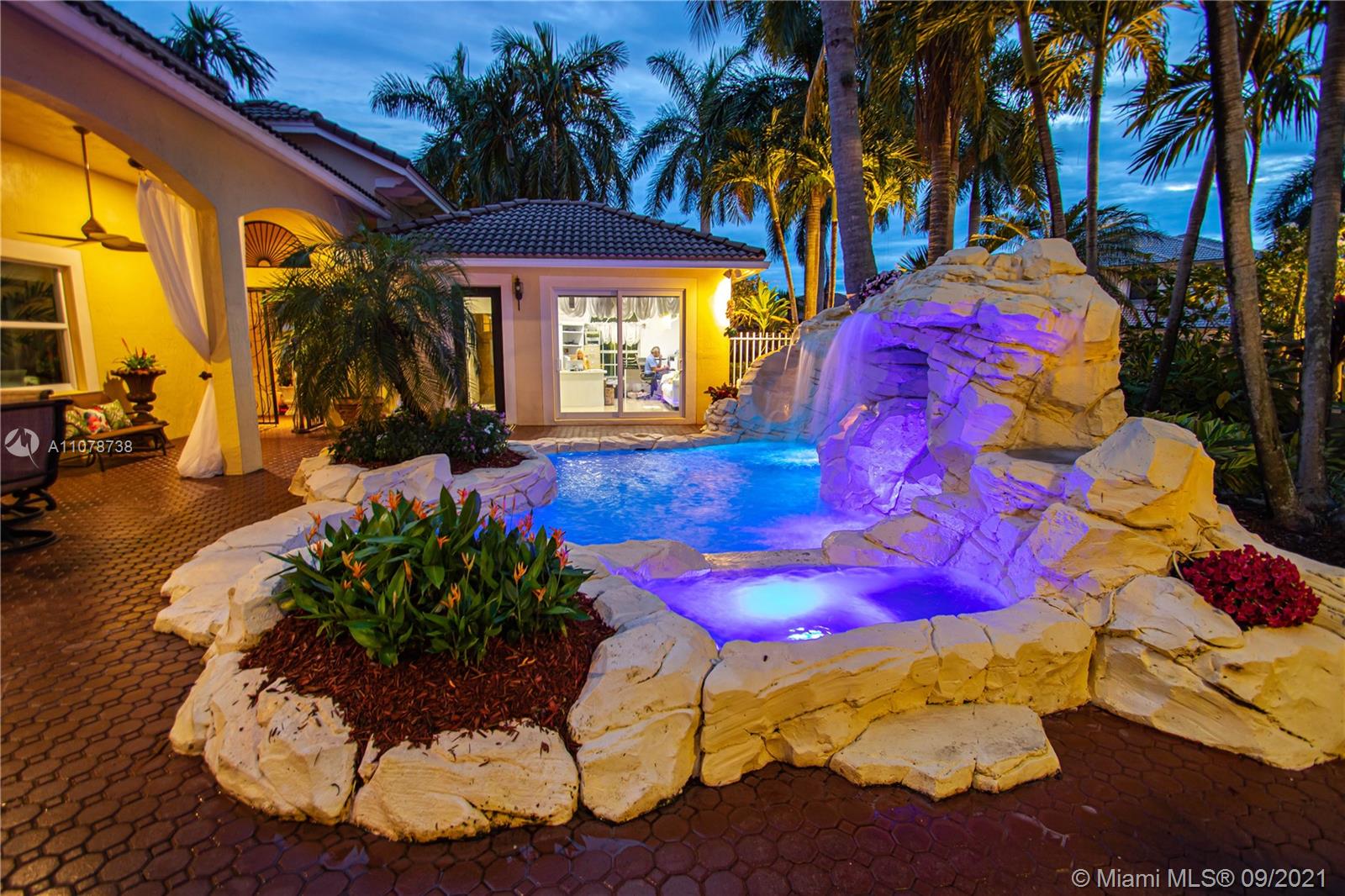 Owners just executed a contract on another property! Furnished! Former Ambry Homes model. An expanded version of the gorgeous Venice model. This unique courtyard home has been remodeled with over $600,000 in upgrades. Professionally designed and decorated with touches of Mediterranean elegance and modern design. Upon entering the home, you will experience an ambiance of elegance and glamour. White Turkish high polished marble floors and fine chandeliers are the first to experience. Then, you will step to a brand new kitchen with marble counters tops imported from Italy. SS appliances, incl. a brand new refrigerator and more. A well-equipped gym, a guest quarters, impact windows, $100K pool, built-in electric generator. Offers with a pre-approval ltr and proof of funds.