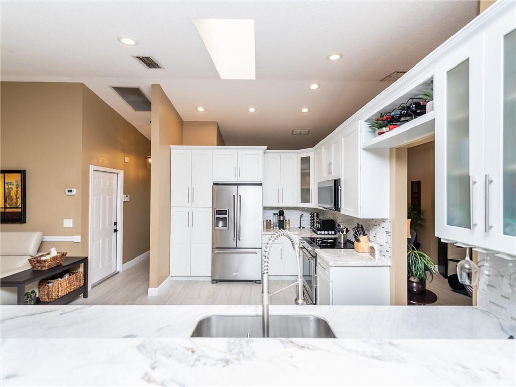 A BEAUTIFUL AND IMMACULATE HOME FEATURIING TOTAL REMODEL THRU OUT WITH HIGH VAULTED CEILINGS WITH EXTRA LIGHTING, ROOF (2017) STAINLESS AND QUARTZ KITCHEN LESS THAN A YEAR, CUSTOM DESIGNED BATHROOMS, EXCESS HIGH HATS, NEWER GARAGE DOOR, ALARM SYSTEM, COVERED AND TILED SCREENED PORCH OVERLOOKS THE PAVERED PATIO WHLE ENJOYING GORGEOUS SUNSETS, ACCORDIAN SHUTTERS AND IMPACT DOORS, SPRINKLER SYSTEM FROM CANAL, EXTERIOR FRESHLY PAINTED WITH DESIGN LANDSCAPE, ALARM SYSTEM (XFINITY) A MUST SEE!!