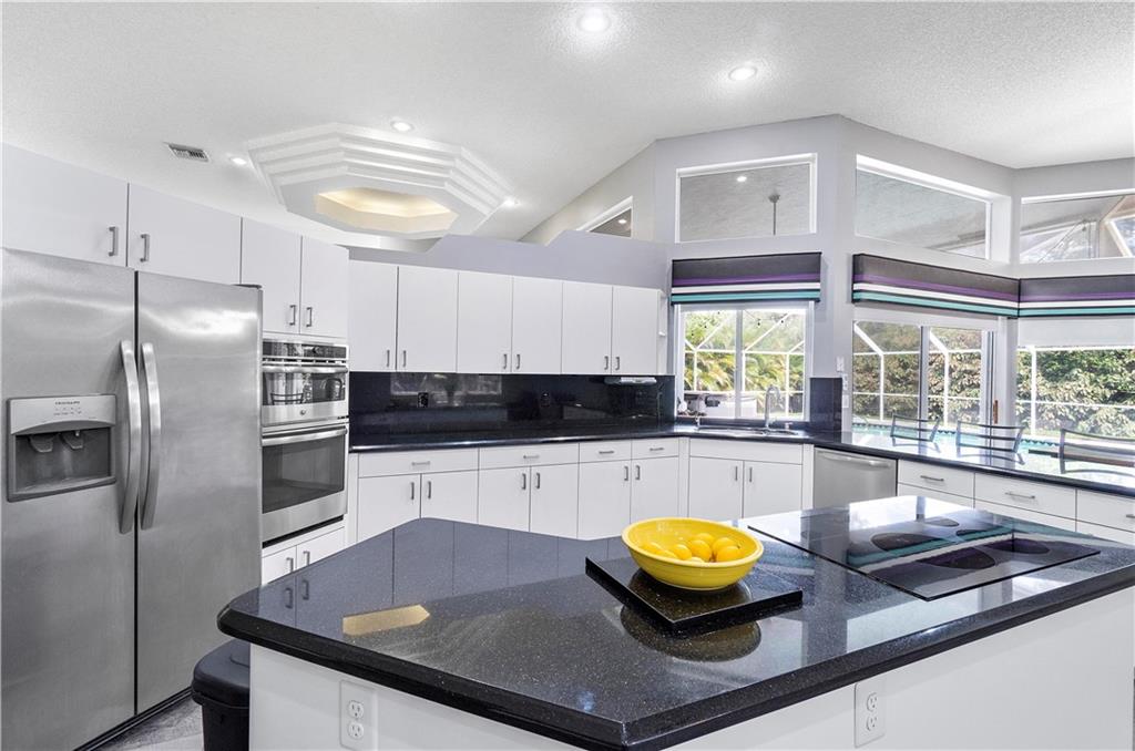 CHECK OUT THIS IMMACULATE 5 bedroom + 3.5 bath +3 Car garage on an enormous cul de sac lot of over 17,100 sq ft. Great open floor plan with Volume ceilings and a family room that really stands out as the center of this home. Extra long driveway which can accommodate 8+ cars. All appliances just 2+ years. A/C BOTH BRAND NEW Large covered lanai and fully screened pool area. Fruit trees and lots of green space. Upgraded baths, beautiful lighting, touches throughout. close to the private community park which includes 2 tennis courts a full basketball court, picnic area and more. This is a keeper!!!