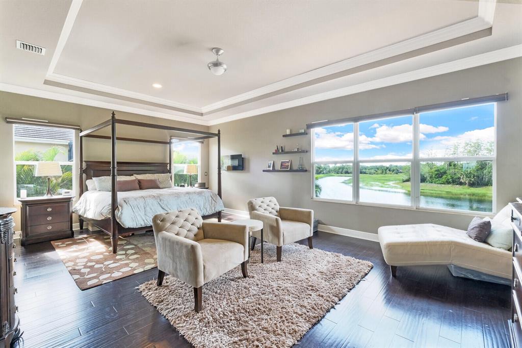 Extraordinary opportunity to own a luxury estate home on the best lot in Wellington View! Offering breathtaking sunsets, privacy, wide open water & preserve views this stunning home boasts a lg. circular driveway, IMPACT GLASS (2nd level), 250 ga. propane tank, gas cook top & a summer kitchen! You'll be impressed w/ the stunning 2-story foyer, curved wood staircase, upscale RESTORATION HARDWARE chandelier, wood plank tile, wood flooring(no carpet) & double sliders in the family room showcasing the lake views. The gourmet kitchen has a GAS COOKTOP, large kitchen island w/ bar seating, upgraded cabinets, SS appliances & a lg. pantry. The oversized owner's suite displays spectacular lake views, a sitting area, frameless shower & marble vanity tops in the bath. Other upgrades & features