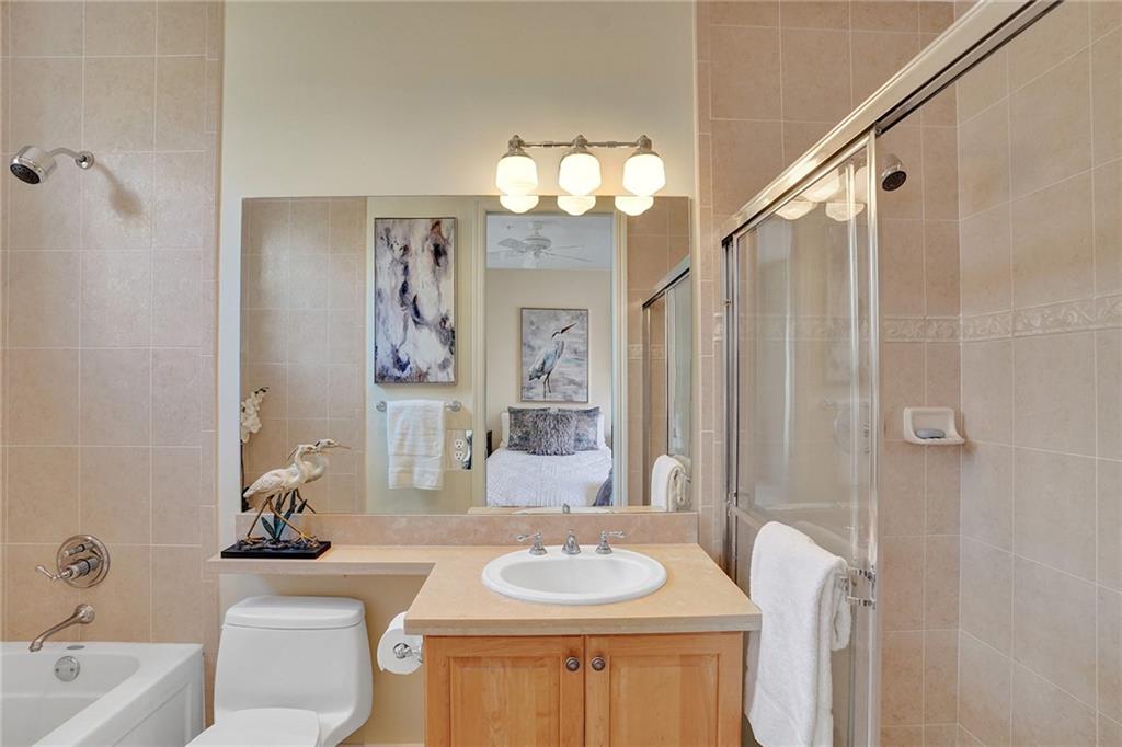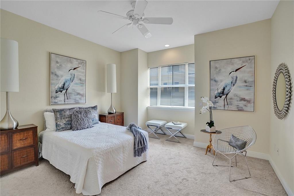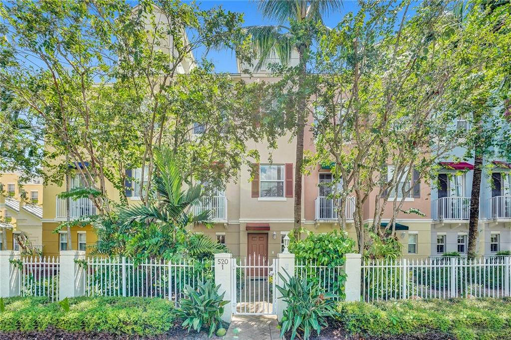 Victoria Park Elegant 3 story townhouse features 2 Bedrooms & 3.5 Bathrooms & a 2 car garage!.....On 1st floor is a bonus room which is presently used as office;( desks & cabinets stay); but perfect den or 3rd bedroom & has a full bath....Gated front court yard great for your pets....2nd floor features volume ceilings, a 1/2 bath, custom kitchen w/ granite breakfast bar, stainless steel appliances, gas range, generous cabinet space & granite counter tops overlooking dining room & living room....Tile floors on 1st & 2nd level are laid at a diagonal....On 3rd floor is washer/dryer & 2 master bedroom en-suites; w/ walk in closet in 1 Master Bedroom & separate tub & shower....2 zone AC, impact windows & doors, tankless water heater..... Community heated pool..... Walk to dining & shopping
