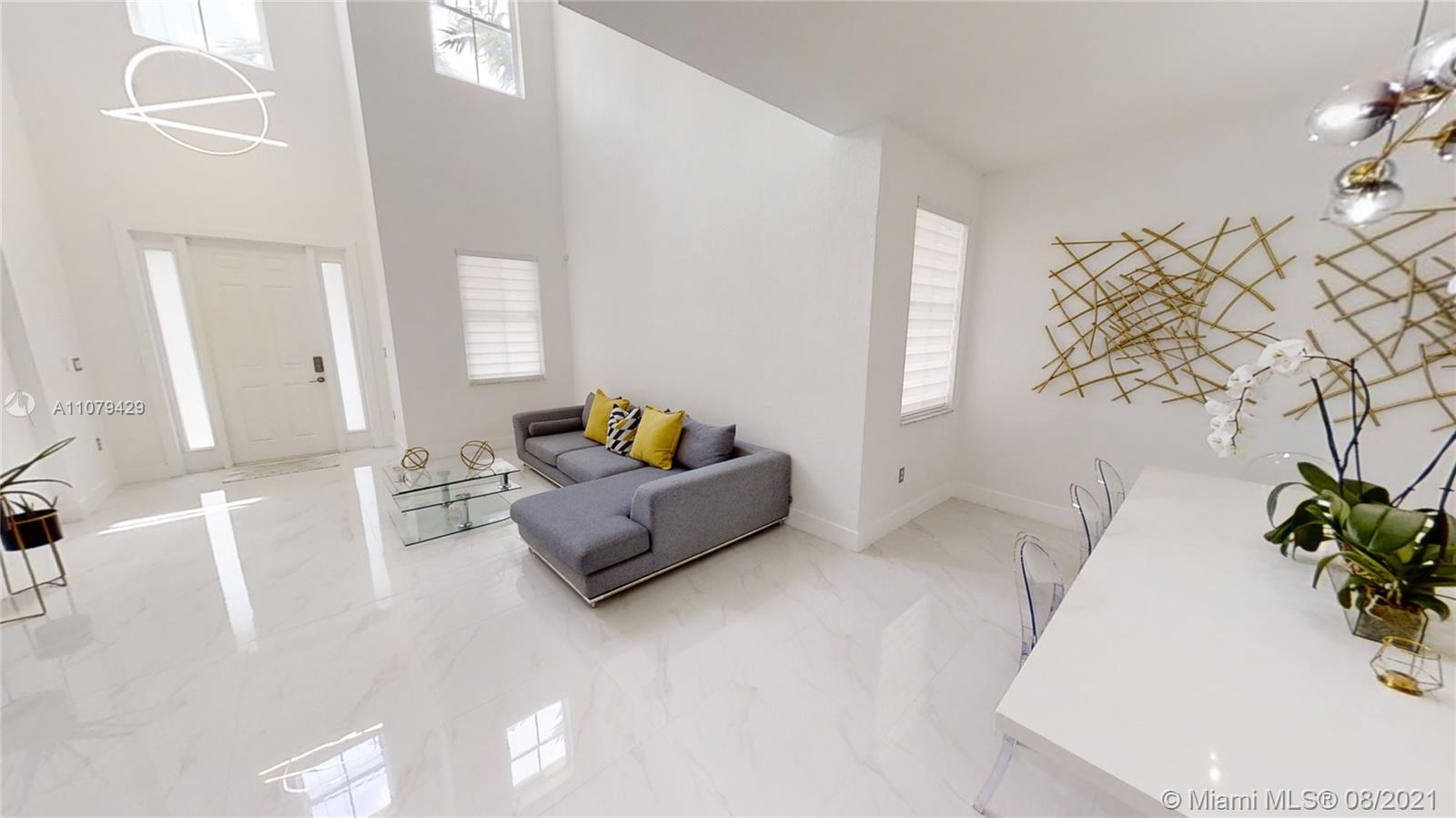 Single Family Home Island at Doral completely remodeled & modern decorated;2,322 Sq/Ft (Living Area) 4 BR 3 BA. Main entrance open to below 20 Ft ceiling, modern open spaces; one (1) bedroom ground floor with a full bathroom, three (3) rooms upstairs. Porcelain floor throughout the entire house, kitchen Italian cabinets, cooking island, Corian countertop, smart SS appliances. Travertine stone in patio, outdoor kitchen & overlooking fountain lake view. Hurricane high impact windows, 24 hours security guard, this community offers a quality living of all residents, situated in the peaceful City of Doral, America’s Top Cities to Live & schools A+ rated.