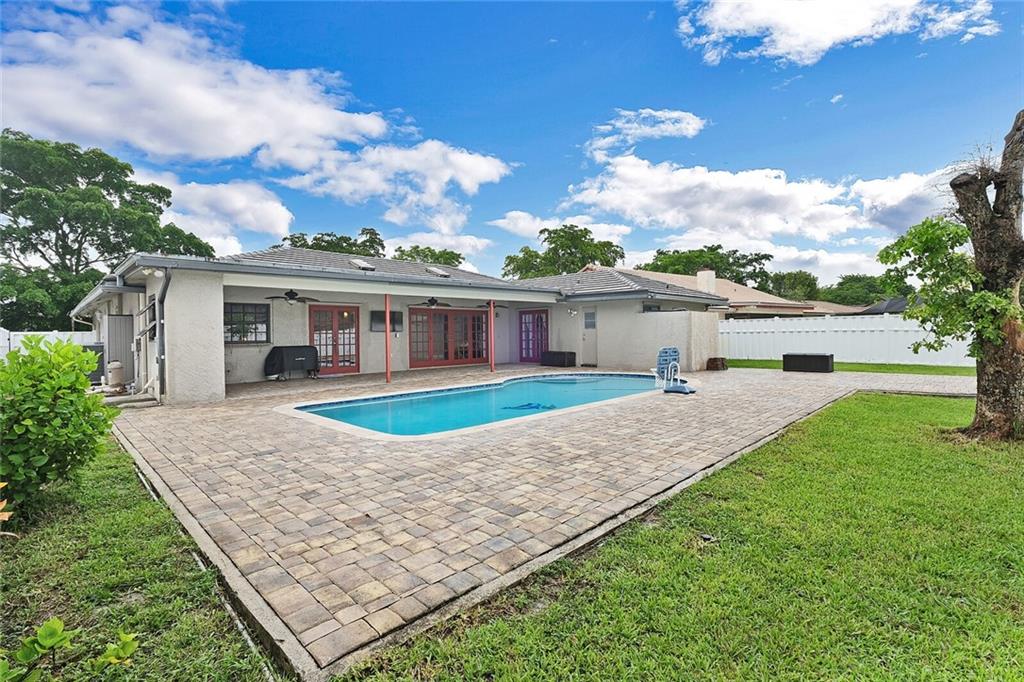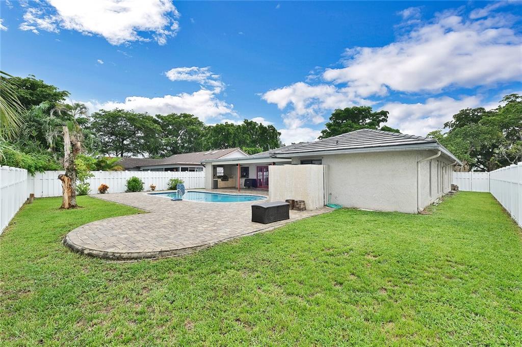 Beautiful 4 bedroom pool home in highly desirable Cypress Glen neighborhood! Featuring vaulted wood-paneled, this open and airy floor plan is great for entertaining! Open kitchen has been updated with real wood cabinets, granite countertops, and stainless steel appliances and flows into the family room. French doors take you outside to your fenced in tropical oasis backyard. Pool was recently updated with extended paver brick backyard, new diamondbrite, and new LED pool light. Stacked bedroom plan. Master bedroom features an XL walk-in closet, 2 sinks, and a cabana bath door to the pool area. 2nd bathroom beautifully updated and features double sinks and extra built-in storage. All bedrooms are good sized. Water heater 2 years old, AC less than 1 year old, Roof 2006!