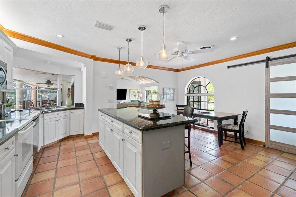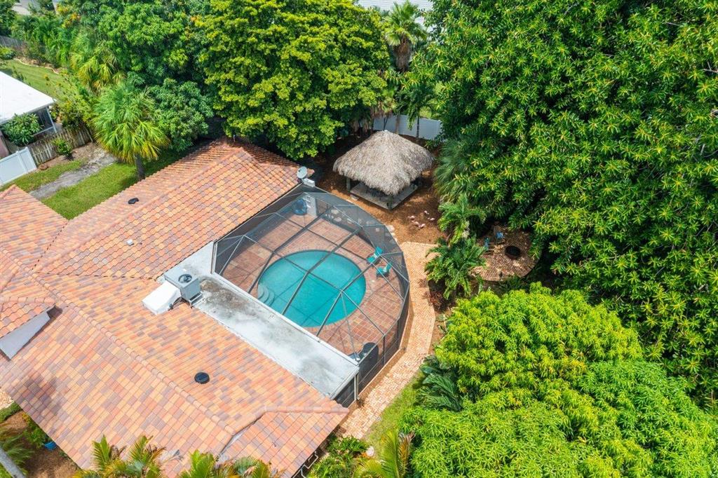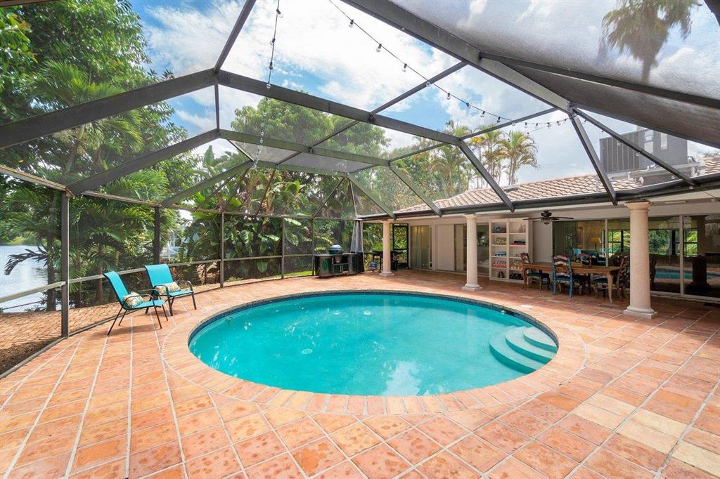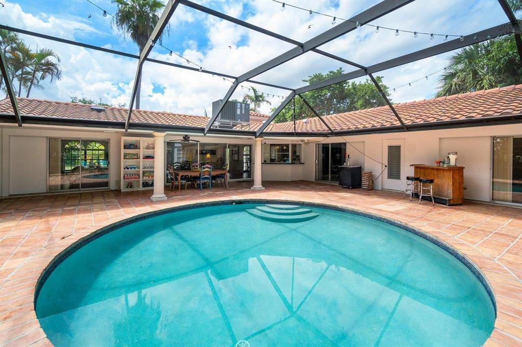 Extraordinary, upgraded, lakefront mini-estate in prime east Boca Raton location. This will make you smile - from the gracious approach, to the wow feeling coming in the front door, to the incredible outdoor living space, only surpassed by the amazing lake views from most rooms! The beamed cathedral ceilings and wall of sliding glass doors expand the spacious feeling of the home. L-shaped layout with all rooms opening to the incredible 1500 SF screened entertainment space, and pool (two cabana baths). Artistic touches throughout - refinished kitchen cabinetry, creative storage solutions, barn doors, 14x14 tiki hut (2020), custom built-ins for primary bedroom suite. Incredible 1/3-acre lot with big shed and room to expand! New roof 2019. AC 2014. Minutes to downtown and beach!