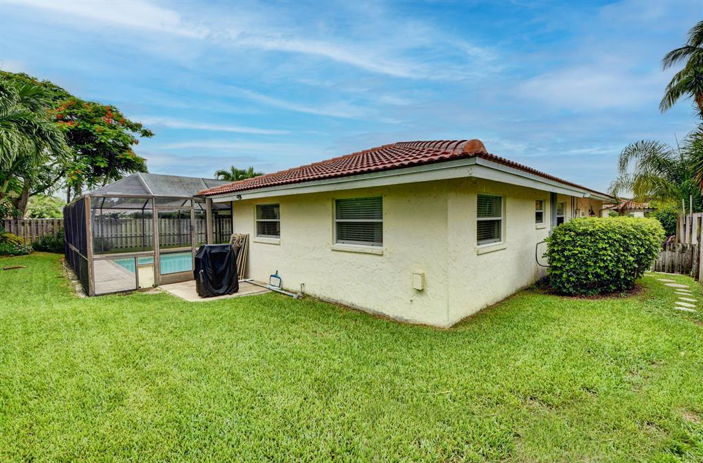 Bright, updated 4 bedroom 2 bathroom floorplan features an open concept kitchen with granite counters/bar, 42'' cabinets, and stainless appliances. Perfect home for entertaining and family gatherings. The master suite includes a large, built-out walk-in closet and pool view. Additional home features are hurricane impact windows/shutters, roof 2018, replaced electrical panel w generator hookup, recessed lighting, crown molding throughout, salt water pool, large neutral tile flooring in living areas, wood laminate in bedrooms, California closets, plantation shutters, 2016 installed A/C unit, new front walk way and patio, new side patio and new pool pavered deck with grill area 2020, fence replaced 2018. Excellent central Boca location, A rated schools all on a quiet street.