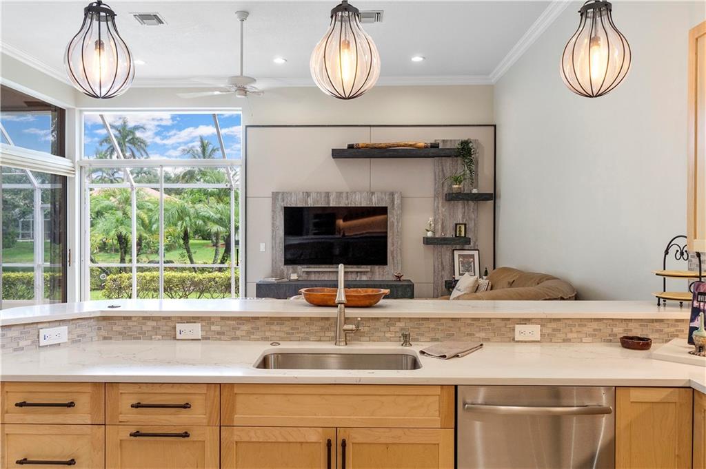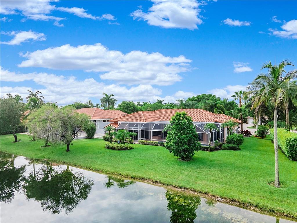 Contemporary custom home, wide water on 120 acre navigable Lake Coral Springs. Cul-de-sac of estate homes. Desirable split bedroom floor plan; 2 bedrooms both with updated en suite baths. Beautiful 24" x 24" porcelain tile, lots of high hat lighting, crown molding and new carpeting in bedrooms. Remodeled kitchen with oak cabinets, quartz countertops, custom designer backsplash and top of the line stainless Jenn Aire appliances. Large breakfast room and family room features custom built-in entertainment center. Luxurious master with custom built-ins in large walk in closet. Fantastic natural lighting, glass doors, transom & palladium windows. Oversized 2 car garage, accordion shutters and New Roof in 2016. Screened, heated pool and large covered area great for entertaining.
