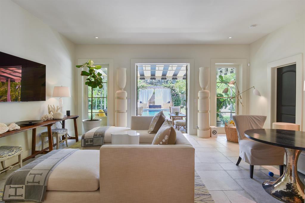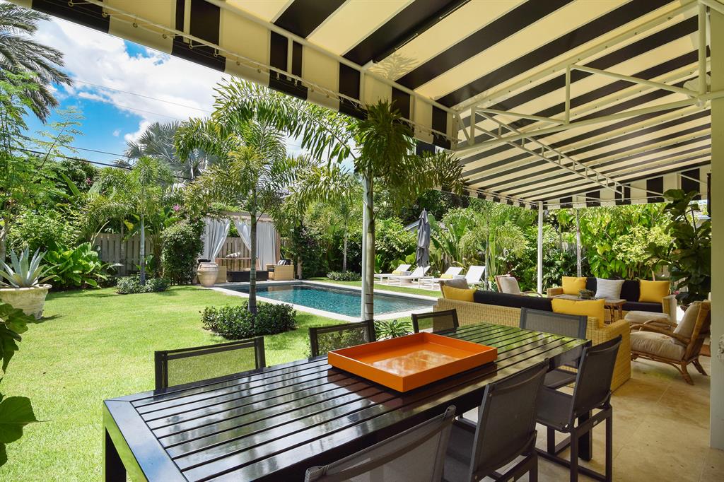 The perfect Palm Beach bungalow, located in El Cid. This unique property has undergone a gut renovation by noted architect and designer. This house features amazing entertaining spaces. The professional kitchen and butler's pantry divide the living/dining room from the family room. Expanded to have 3 beds and 3 baths with a large family room, the living areas were extended outdoors. Expansive outdoor loggias include an outdoor living room pavilion, a dining pavilion, and a romantic sitting area for 2 at the end of the expansive lap pool. The pool is the centerpiece surrounded by magical gardens designed making this property your own private resort. Available furnished.