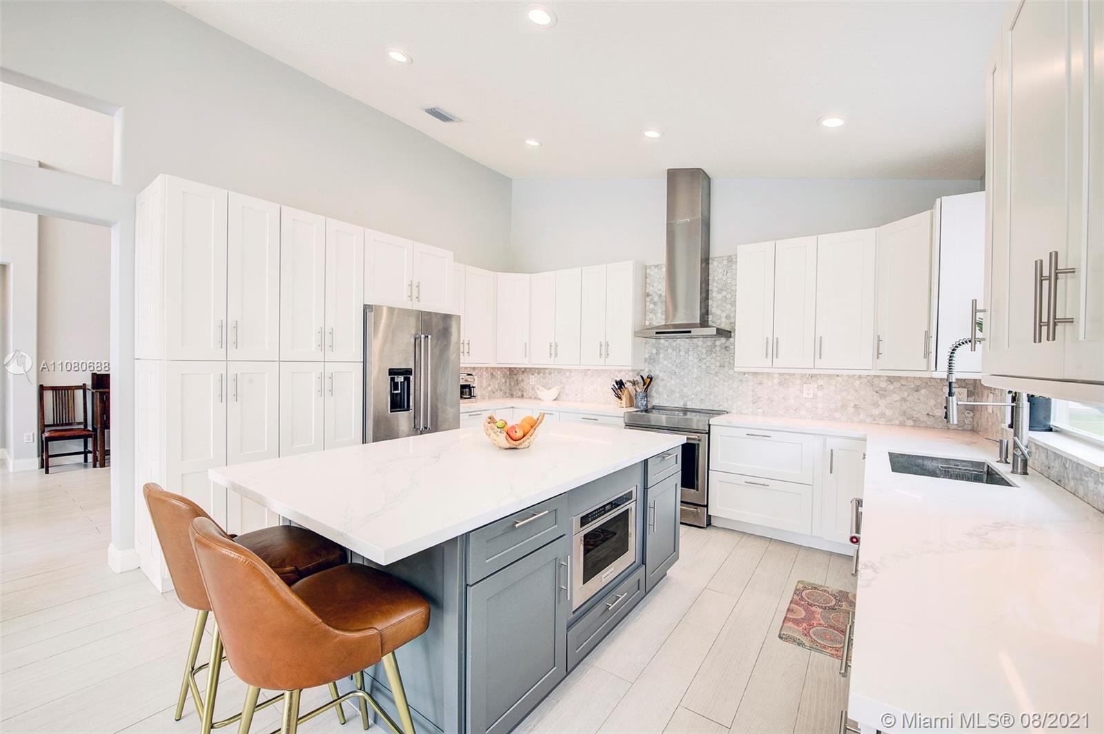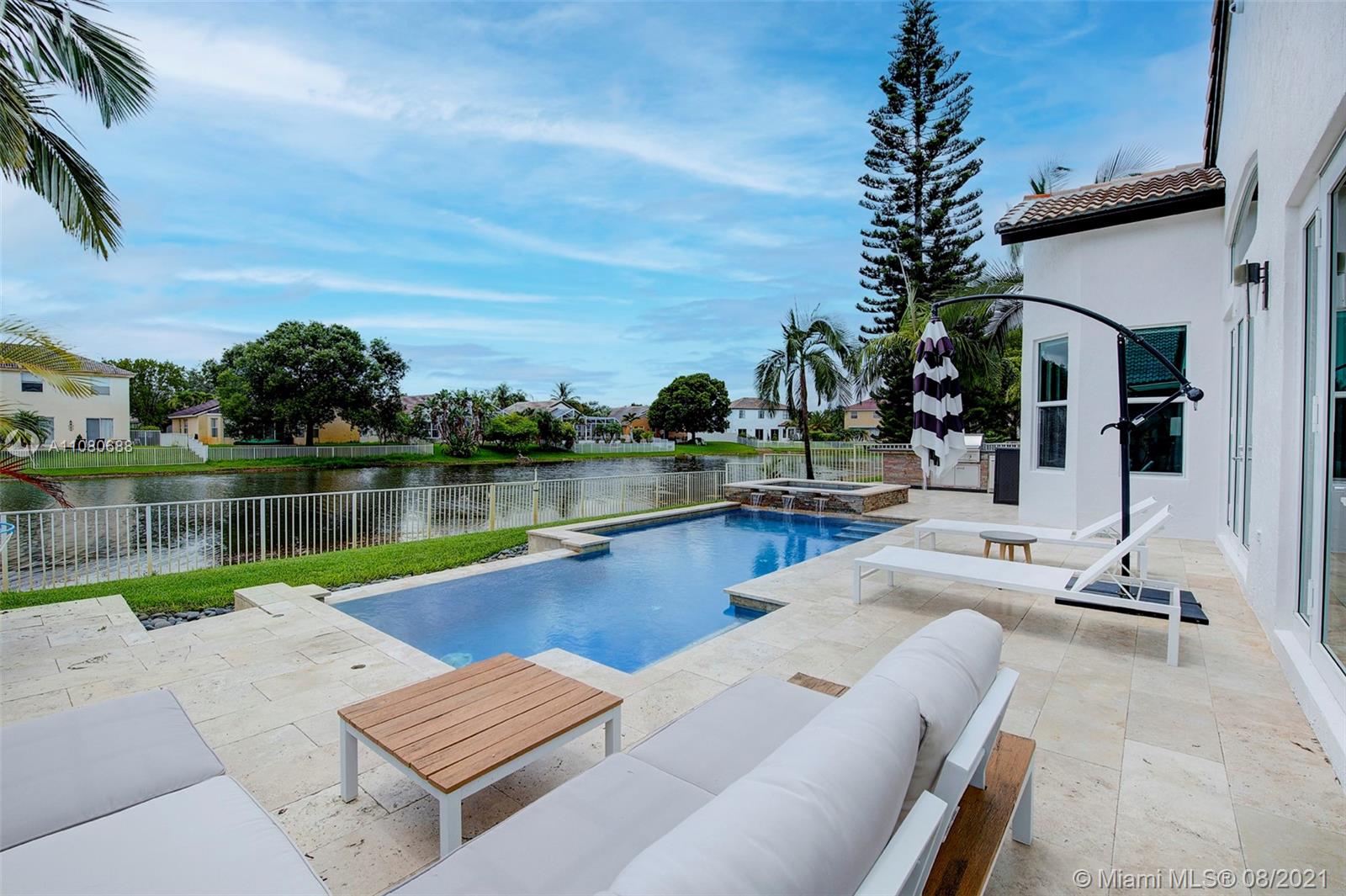 Prepare to be amazed when you step inside this gorgeous remodeled home in the highly sought after Sunset Lakes community! Upon entry you are greeted by an open floor plan with direct views to the pool and lake. Complete impact windows & doors PLUS natural lighting! Fully remodeled flooring all throughout! Home exterior was freshly painted! Updated kitchen with white wood cabinetry, soft close drawers & doors, quartz countertops, large center island and SS appliances! Fully remodeled bathrooms. Master has bamboo floors, electric black out shades & custom closets. Enjoy Florida living with this stunning pool with infinity edge, decorative lighting, salt water system, & spa! Beautiful travertine pool deck & outdoor kitchen with grill makes this backyard the perfect place to entertain!