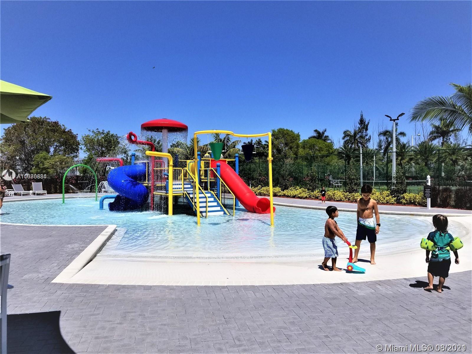 Better to be in a corner unit at this wonderful Grand Bay gated community. First floor tiled with living/dining room area, family room and a nice size open kitchen with SS appliances. Enjoy a Bar-b-q in your private backyard. Second floor with 4 bedrooms 2 bath. Washer & dryer at second floor to avoid bringing down your laundry. Plenty of guest parking. A fabulous recreational club where you can become a member and enjoy a wonderful swimming pool, kids paly area, tennis, gym, activity rooms....