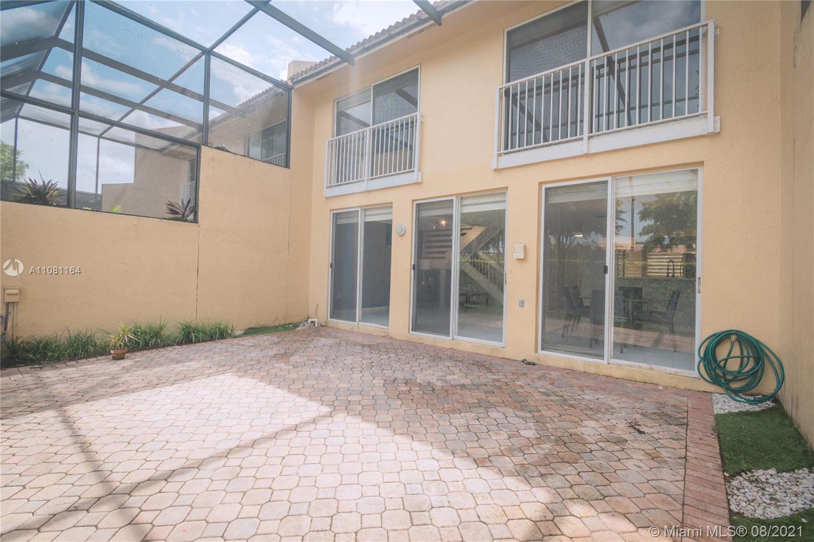 Wonderful home! Great location in the heart of DORAL! Community has access to Doral Park Clubhouse (tennis court, pools, playground, restaurant, fitness center) Low HOA and low taxes! Great school close to the community! RENOVATED kitchen, spacious family room and dining room overlooking patio with 3 sliding doors with beautiful blinds. Master bedroom is large and lightly, plenty of closet spaces and a bathroom with double sinks. All other rooms are also large with nice closet spaces. Large screened patio! 1 car garage and long driveway with room for 2 other cars. Visitors parking in front of the unit.