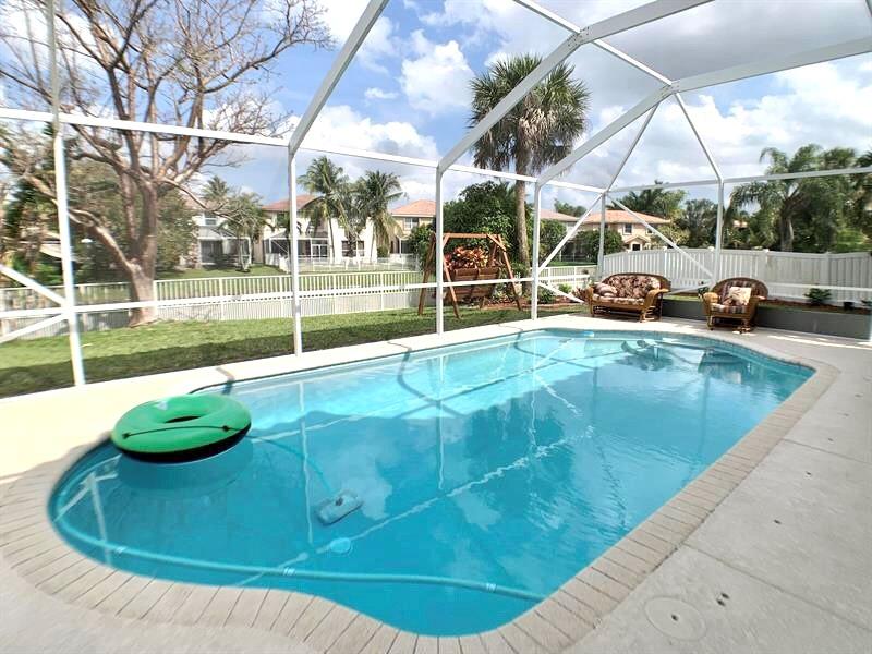 Beautifully landscaped lakefront heated pool home, in a desirable gated community. Open floor-plan, high ceilings, large living room, family room and formal dinning room, tile thru-out first level, kitchen has granite counter-tops w/breakfast bar and stainless steel appliances. It all overlooks, the screened-in heated pool with newly resurfaced diamond brite, puppy safe fenced yard and amazing water views. The second level offers a large master bedroom suite with sitting area, spacious master bath, double sinks, soaking tub, walk-in shower and a large walk-in closet. Two additional bedrooms, a guest full bath and an open loft/4th bedroom. Hurricane accordion shutters on windows/sliders. Highly rated schools, close to shopping, restaurants, parks, entertainment and sawgrass expressway.