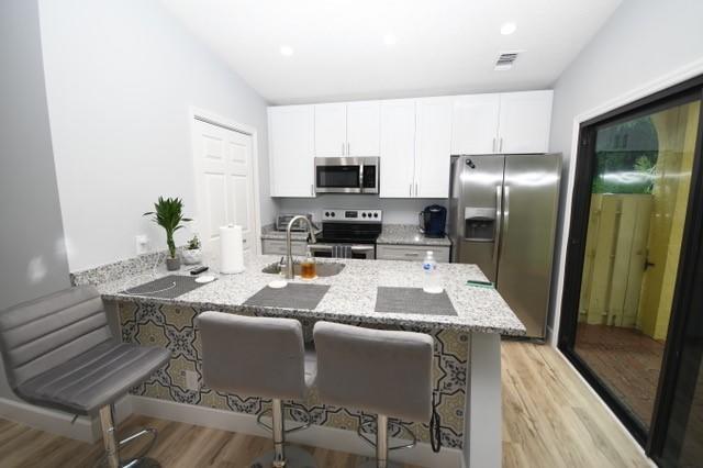 Gorgeous modern update makes this a special home. Larger 2 bedroom 2 bath TH in convenient location. Hurricane windows and doors. Contemporary kitchen with all new appliances, Shaker cabinets and stone countertops. Bathrooms tastefully updated with Carrara look tile and contemporary fixtures. Instant hot water heater, new washer/dryer. 2 Lovely private outdoor spaces. A rated schools and walk to Publix!