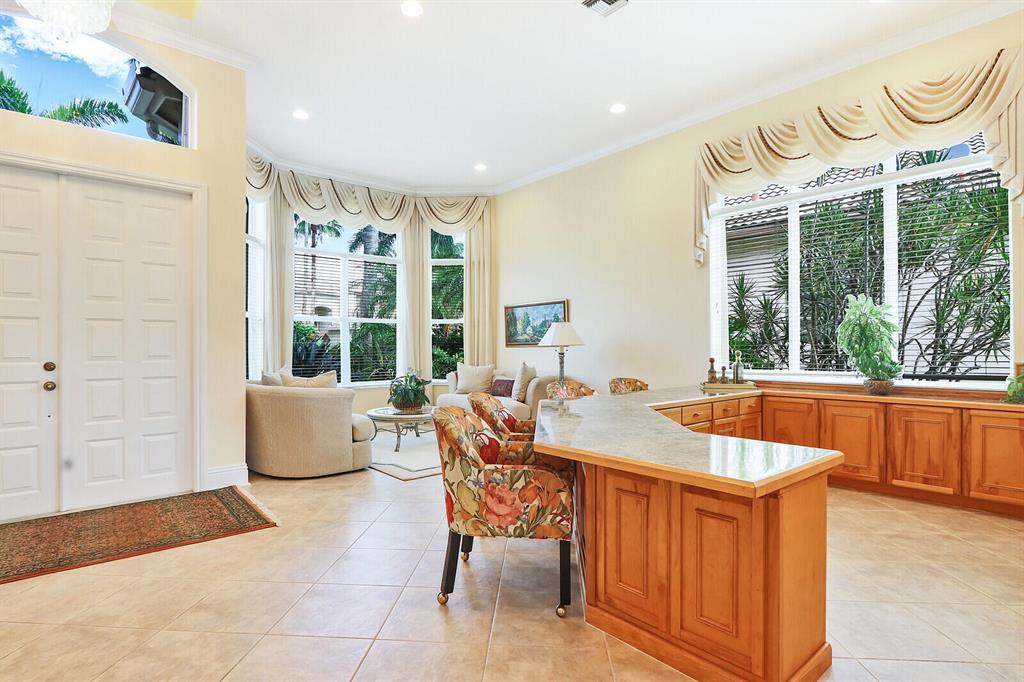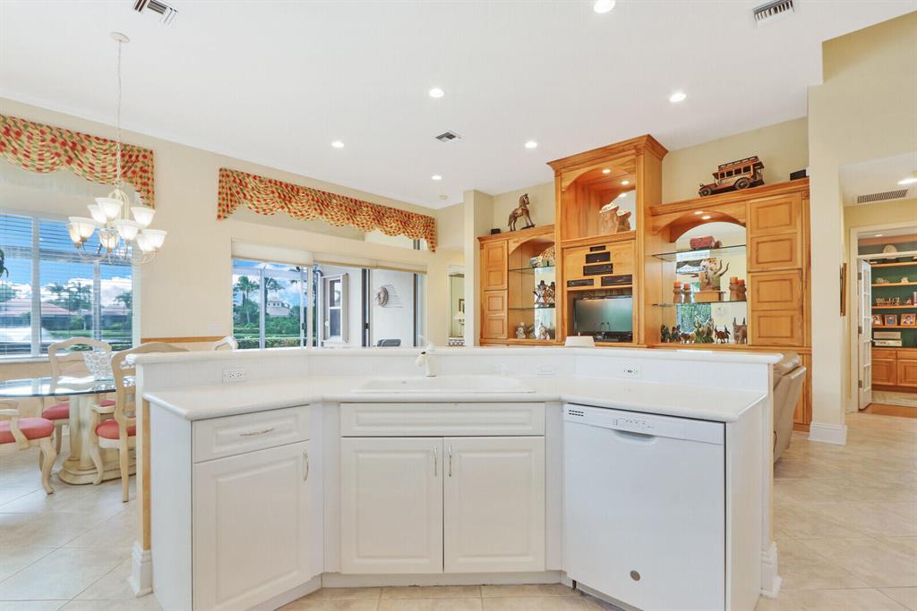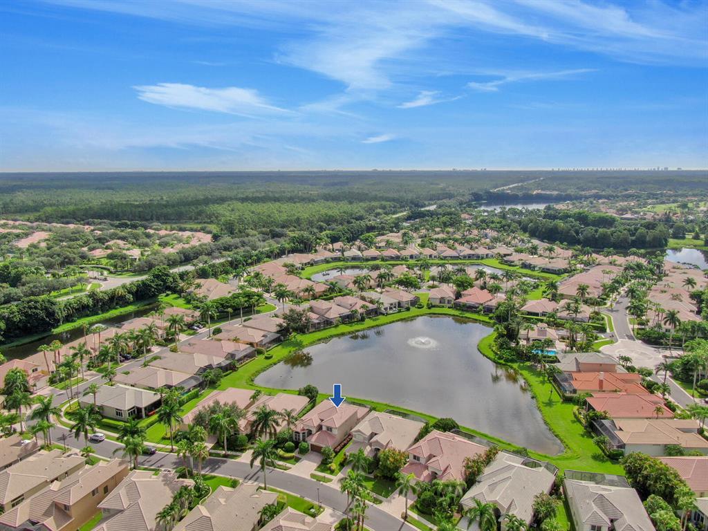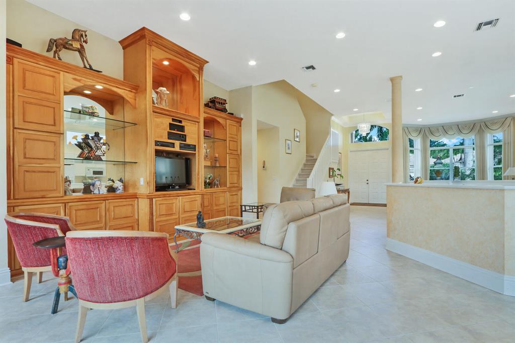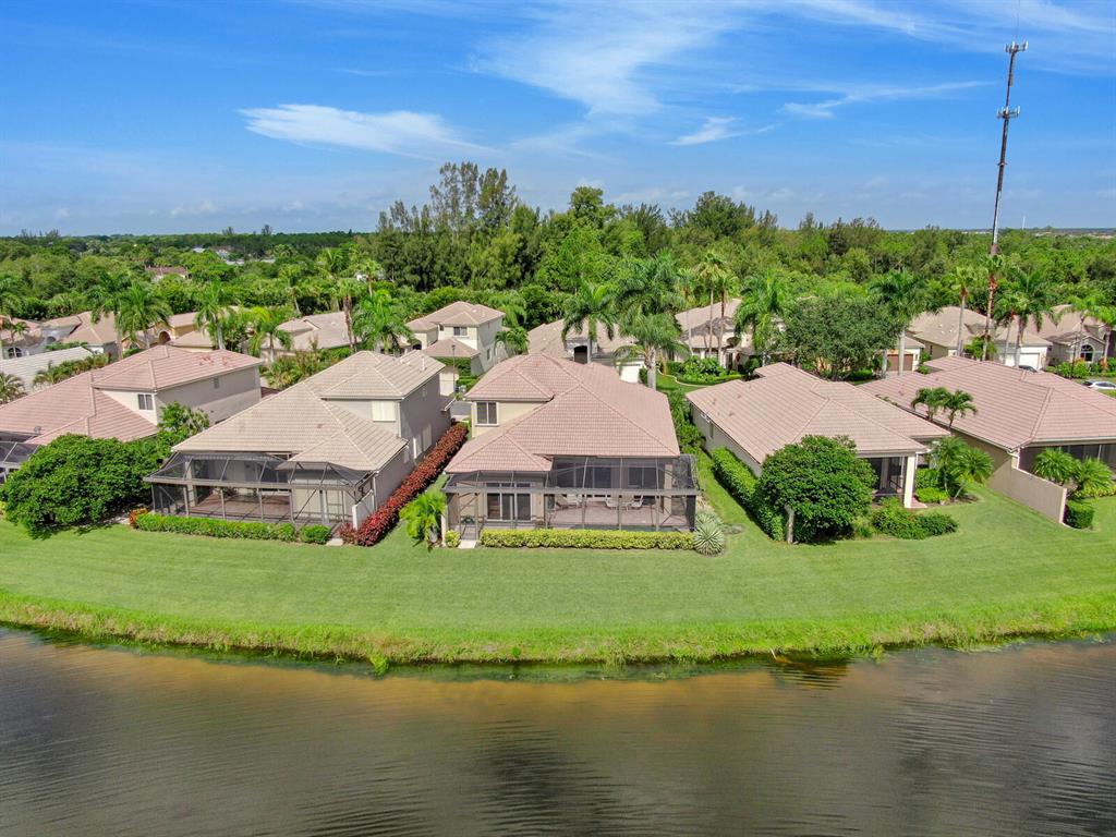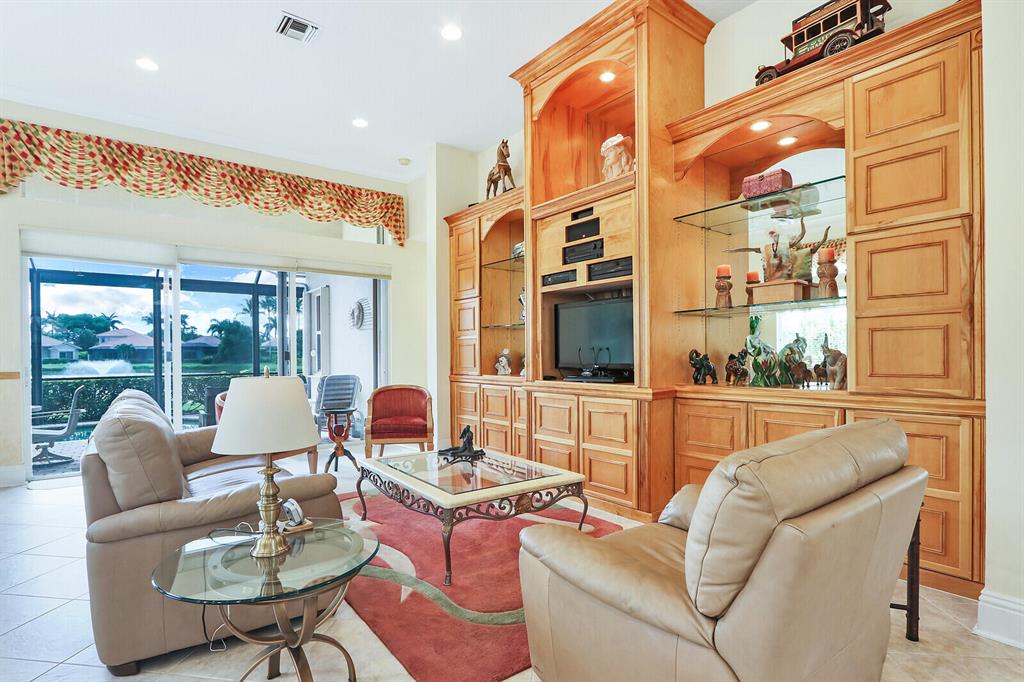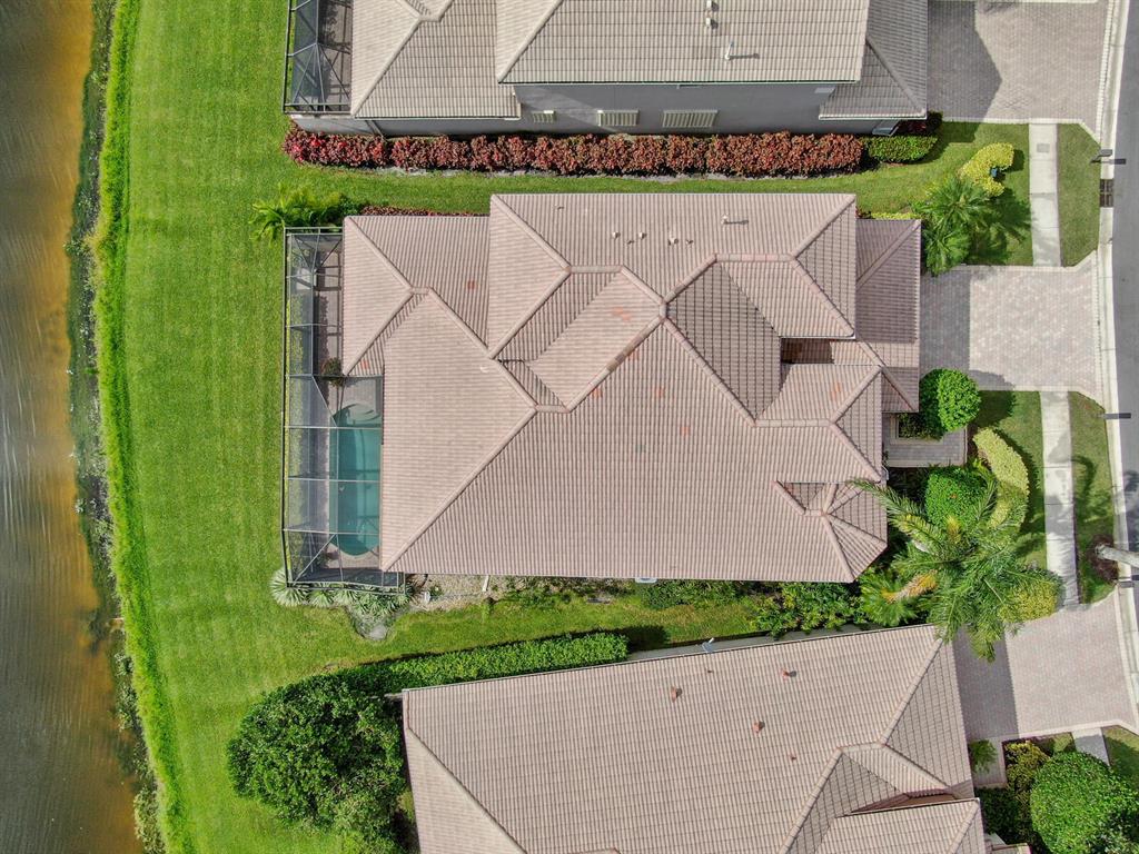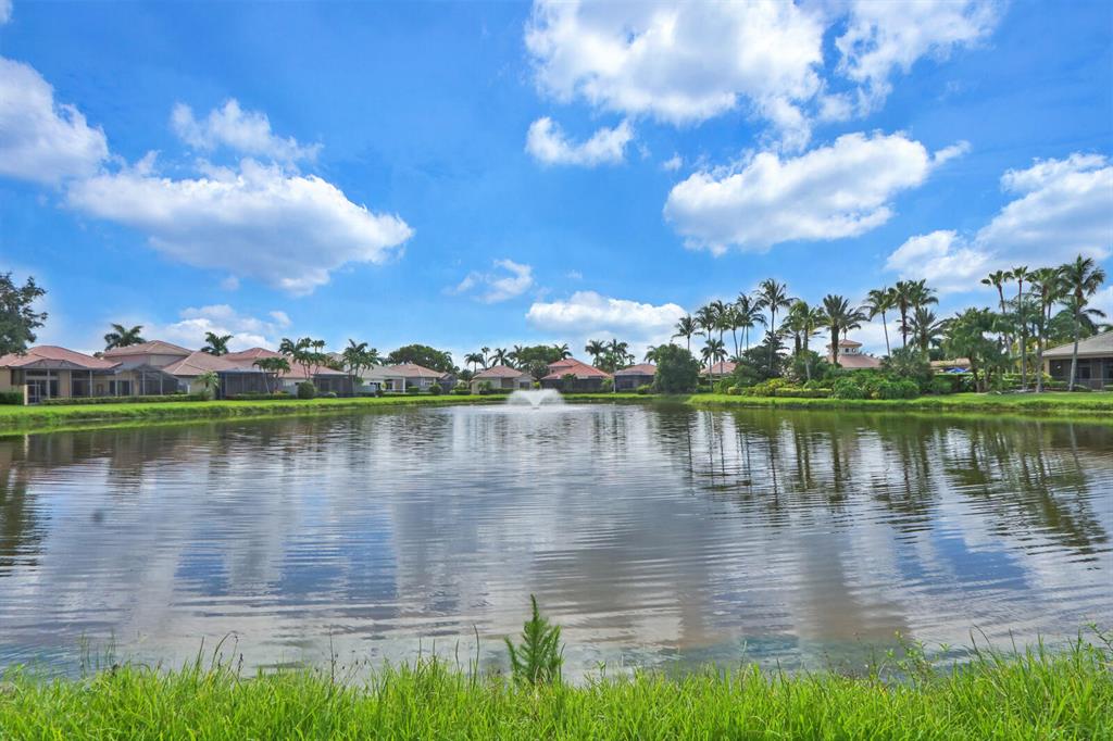 With 75 feet of premium water frontage, this magnificently customized great room home offers one of the best lots in the Grande. WIDE water views throughout the entire first floor of this 2600+ sf home. This 3BR/2.5BA+Den is being offered the original owners, who worked with the builder to open up the floor plan, creating a one-of-a-kind great room home. The owners had first pick in lots, and they selected Lot 99, which offers the widest, most dramatic water views of the lake that it's on. And because the lot is wider than others, it feel like you're on your own island from the screened in pool and lanai and the first floor of the home. This home features Accordian shutters throughout, a custom-built bar with wooden cabinetry, and a custom wooden built-in in the family room.