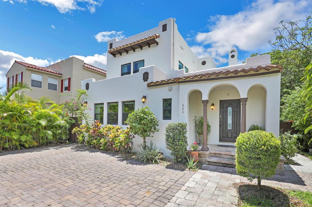 This gorgeous Spanish style home moved to this site is old Florida charm with today's tech/building materials. Fully restored with smart home automation, hd-tv and speaker pre-wired, automatic sprinklers plus a pool installed 2016.The kitchen is huge with gas cooking stainless appliances and granite counters adjoins an oversized formal dining room. The hardwood floors and fireplace are beautifully restored and vintage 1920's. Seller replaced all windows withimpact glass 2017, washer dryer water heater, fresh stucco and repainted, added outdoor Tiki summer kitchen/bar and spectacular grill. Fabulous private/fenced backyard with pool is ultimate me time or entertaining.