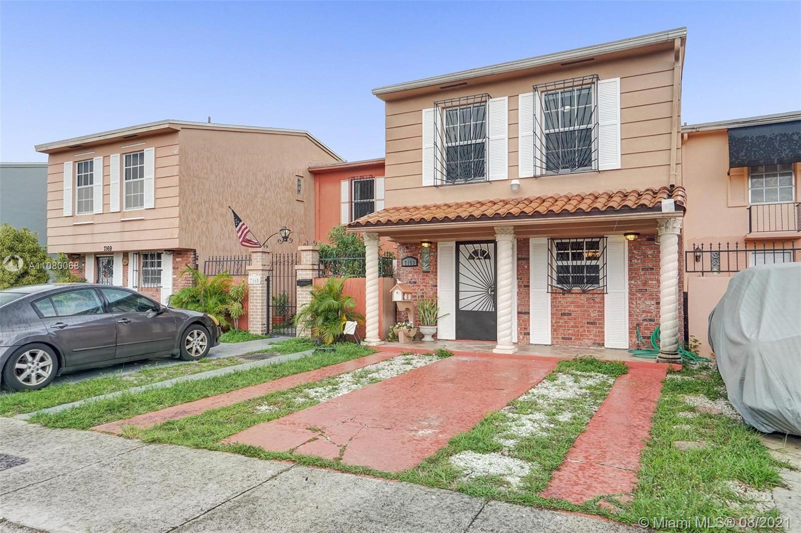 Welcome home to your beautiful 2 bedroom, 1.5 bathroom townhome in the heart of Hialeah with a water view from front porch and no HOA! This home is move-in ready. It has an updated kitchen, beautiful tiled floors downstairs and a 1/2 bath for guests. It is freshly painted with no popcorn ceilings. The original porch was enclosed and made into a Florida Room with an arched entryway making it a great room with the living and dining room. The covered lanai has your washer/dryer and bonus freezer. The patio has a built-in shed w/locked door. Upstairs boasts 2 spacious bedrooms with wood floors and the full bathroom. With the open floor plan, entertaining for you and your guests will be very enjoyable. Your new home is conveniently located near shopping, dining, and so much more.