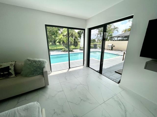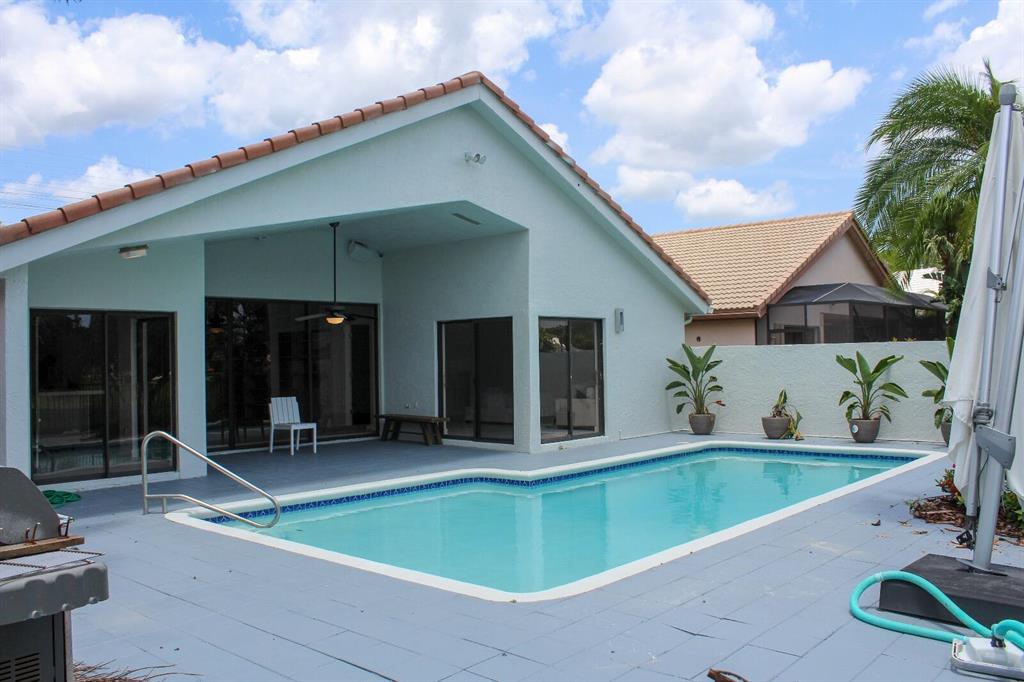 MUST SEE- Beautiful and renovated 2 Bedroom suites and half Bathroom, single family home with a gorgeous pool, serene lake and gold views in the prestigious Boca Woods Country Club. This home includes many futures such as an open concept kitchen and living room area, upgrades bathrooms, 2 suites, smart home with built in surround system throughout entire house and recently installed underground propane tank for Gas Stove. High end appliances wolf and subzero brand, worth more than 25k. Entire home was upgraded from interior to exterior paint and pool. Boca Woods is a mandatory membership community of $65k upfront. $30k is refundable when you sell. This community features two championship golf courses, a resort style pool, clubhouse, fitness, tennis, restaurants and a lounge.