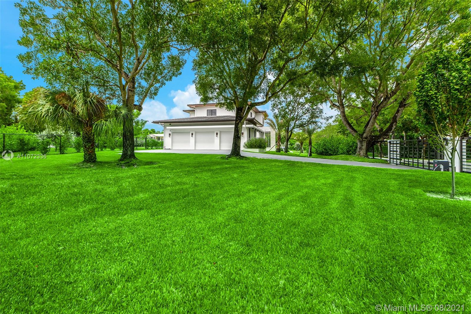 Brand new construction.Just completed. Distinctive & stunning Plantation style custom home on builder's acre sits on high ridge, gated estate w/modern & sleek open floor plan. Formal living & dining rooms! Imposing entry! Hi-volume ceilings, designer porcelain flooring, detailed finest finishes throughout. Gourmet dream kitchen w/ double islands, top-of-line appliances. built-in Bar, split large guest quarter, elevator, hi-impact glass and doors! Additional media/library. Lavish master suite with luxurious & gorgeous bath, huge walk-in closet & sitting room. All large ensuite bedrooms.Two utility rooms for both up & downstairs, Large roofed patio w/built-in summer kitchen. Sparkling saline pool! Extras! Excellent Pinecrest schools! Fabulous! * See Broker's remark for showings instruction*