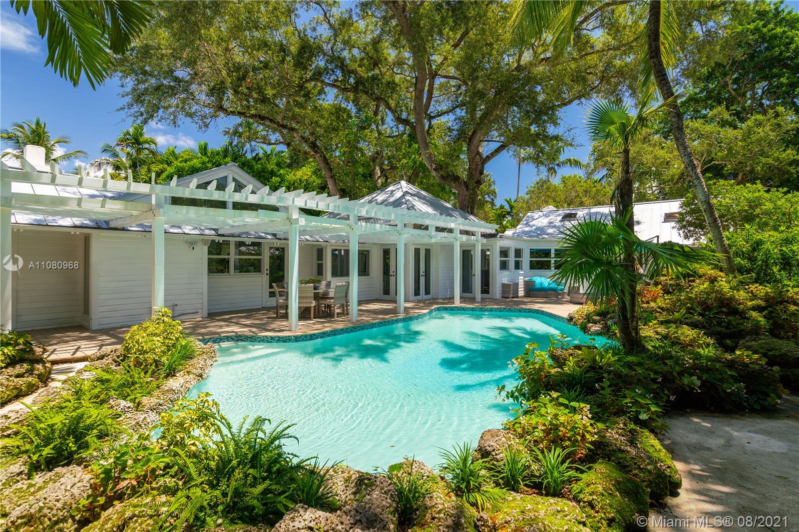 When dreaming what life could be like living in Coconut Grove, this magical home captures the imagination. Filled with charm and character, not to mention a most interesting history, 4250 Lennox is truly a classic. It sits proudly on a lush, 15,780' lot, tucked onto a beloved, private, winding road in the South Grove. Vaulted ceilings, wood floors, new metal roof, new impact windows, and new bathrooms will envelope you, as will the sun-drenched rooms. The Chefs eat-in kitchen w/Wolf & Subzero appliances overlook a sexy pool and coral rock gardens. An incredible family room and two home offices provide the necessary spaces for today’s homeowner. Porches and terraces beckon outdoor living. A Very Special Home.
