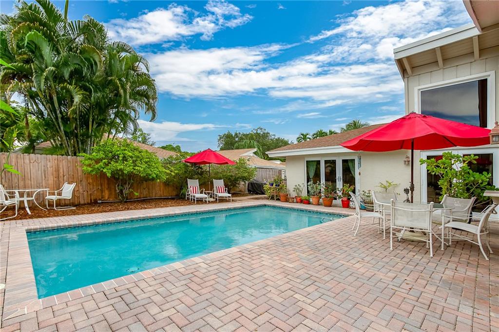 Location, Location! Six miles to Beach, Beautiful spacious 3BR 2.5 baths single-family home with pool in quiet peaceful gated Greens of Emerald Hills. The community is landscaped beautifully and walkable to stores and restaurants. Renovated in 2015, with a new Kitchen (Marble), 6 sets of Hurricane French doors, New Pool and Deck, New AC Rheem. Floors are half wood/ half porcelain tile. Closets galore! Immaculate condition, this home has vaulted ceilings with gorgeous wood beams. Move-in ready!
