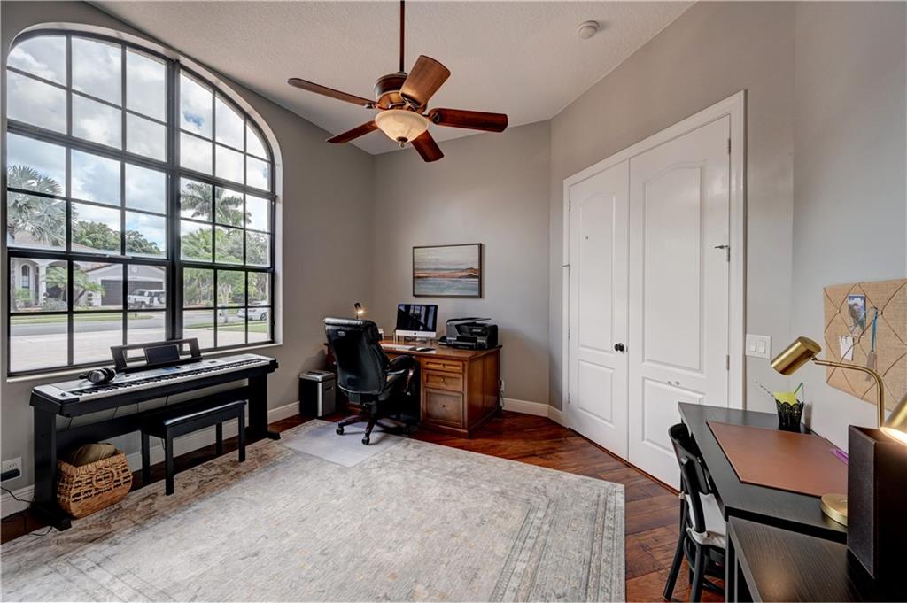 Beautiful 5BR/4BA plus office/den and loft in Parkland Estates! Fabulous kitchen with 36" refrigerator, 36" freezer, 2 dishwashers, cook top in center island, double wall oven, butler's pantry w/wine cooler and huge pantry. Master suite on 1st floor with custom his & hers walk-in closets, whirlpool tub, and frameless shower door. French doors. Heated salt water chlorinated pool & spa. Huge patio with southern exposure for amazing water views. Electrical hook up for a generator. Newer AC units. Hurricane Impact Windows & Doors. Fenced side yard. Gated community. HOA fee includes lawn/yard maintenance.
