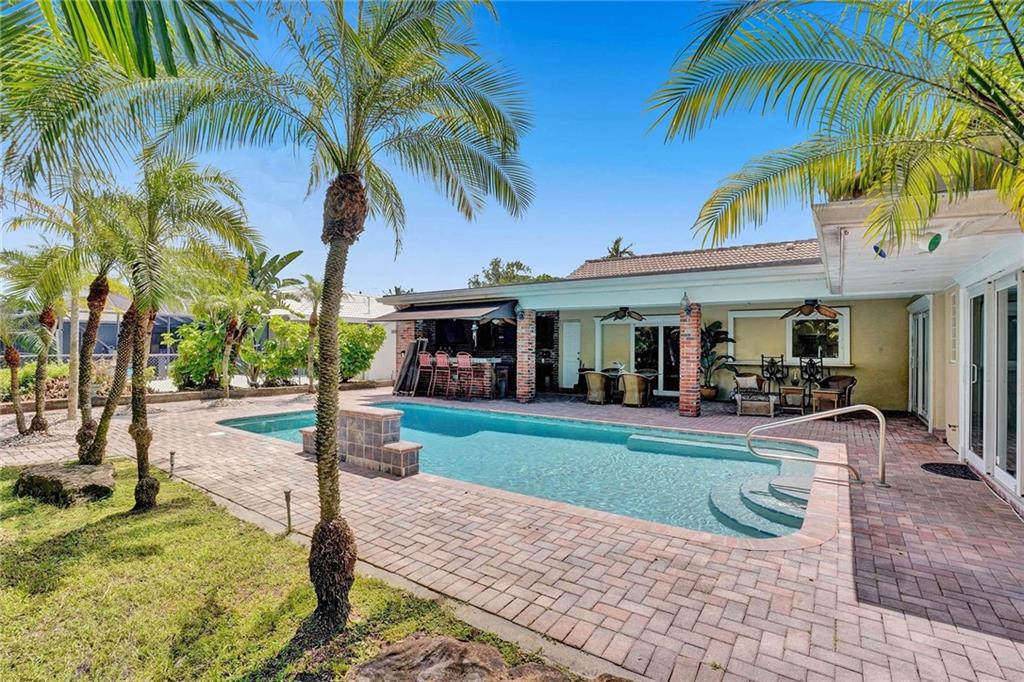 First Time On the Market for this Family Sized Three Bedroom Two Bath Pool Home on a Fabulous Tucked Away Corner Lot with Two Driveways and a Two Car Garage.Two Bedrooms were Joined to Make One Large Third Bedroom, Beautiful White Plantation Shutters, Impact Windows and Sliding Glass Doors, Roof 2005 and a Portable Generator. Over 500 sf Patio With Summer Kitchen Built With Pecky Cypress Cabinets. Lush Mature Landscaping Surrounds this Quarter Acre Lot. Garage was Drywall Converted to a Fourth Bedroom, Can Easily Be Converted Back. Bring Your Design Talents and Make this Home Your Own!