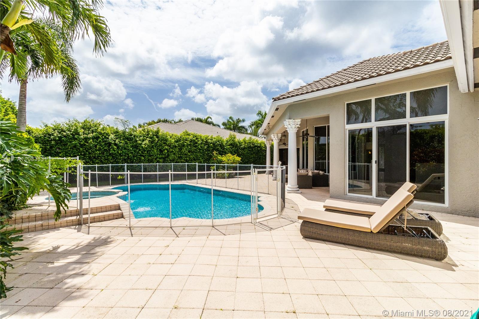 Stunning rarely available unique custom home in the lush and secure gated community of Hawk's Landing . A side garage & large drive way lead into the touret entrance. The home just opens up into bright living spaces with 14' tray ceilings , crema marfils marble floors & many beautiful architectural details. The kitchen is accessible from dining and family room areas with a bar counter, a cooking island and ample storage. Tons of windows and doors showcase the tropical landscape and heated salt water pool area so you can live the Florida lifestyle to the fullest. Large bedrooms with solid wood doors , built out closets and wood style porcelain flooring. The Hawks' Landing Club house with 7 tennis courts , pool, gym and social & kids program adds to the beauty of living in Hawk's Landing.