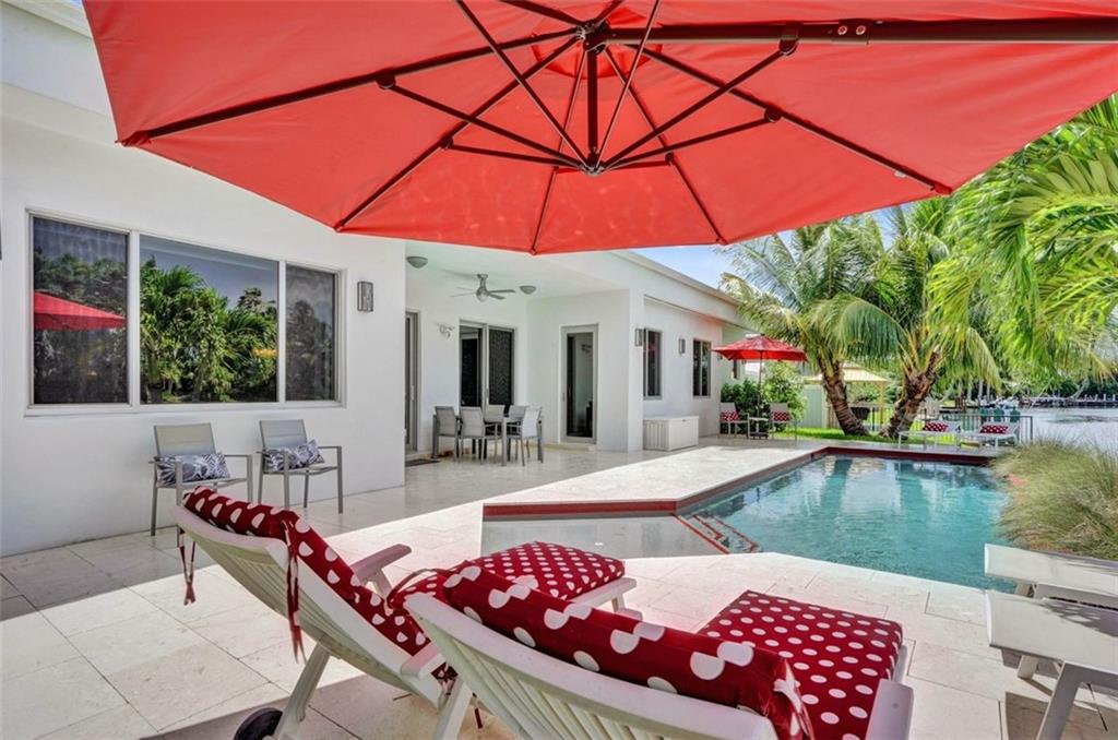 Stunning Modern Residence with wide water views on the Middle River in popular Coral Shores. 10' Ceilings and 8' Doors throughout, gracious open floor plan with an easy flow between kitchen, living, dining and family areas with views to the pool and Middle River. Italian Porcelain Tile flooring throughout. Kitchen features Bosch, Miele and Thermador appliances, large island, custom cabinetry with tons of storage and built-in features; adjacent butler's pantry. Luxurious primary suite with water views features two separate primary baths each with a large walk-in closet with custom built-ins. Salt water pool with sun ledge, marble paver pool surround and patio. Impact Windows and Doors throughout, Laundry Room, Bonus Room, Two Car Garage with high power outlet for electric car charging.