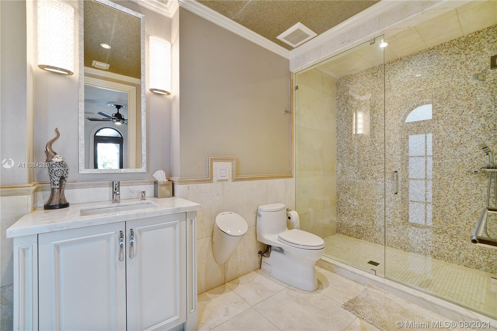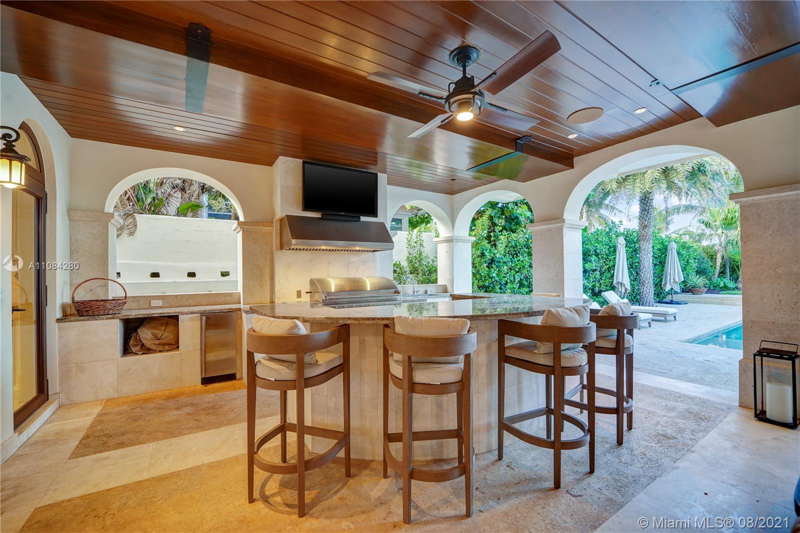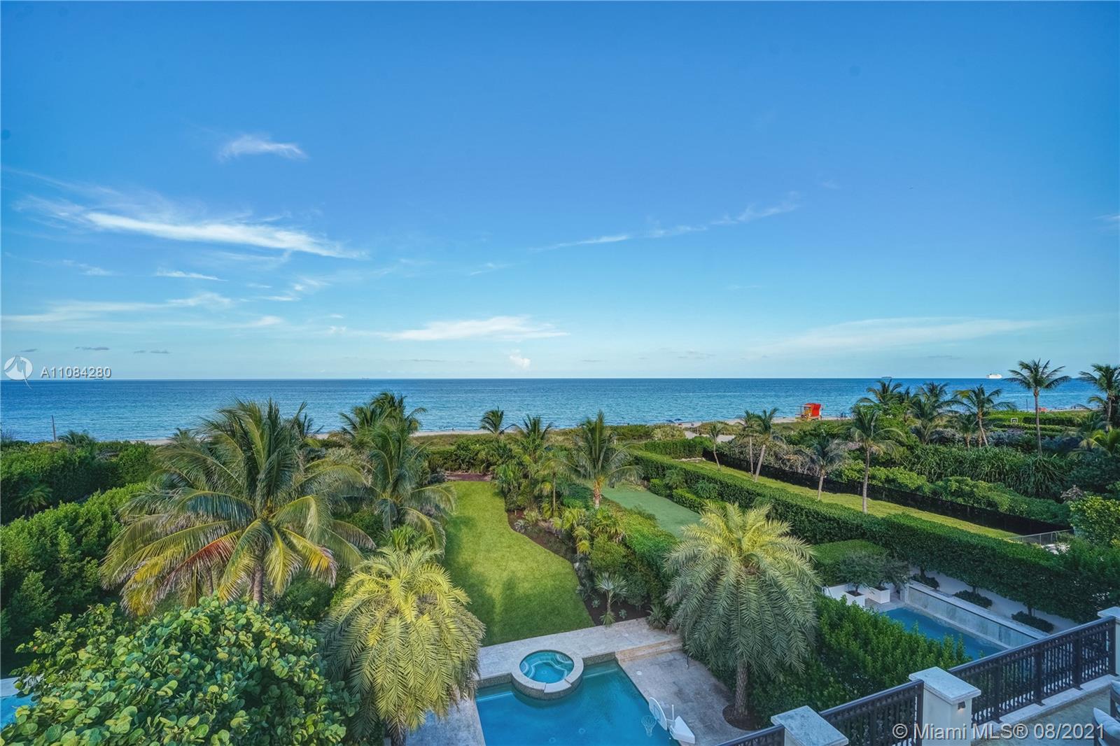 Start the day w/ a sunrise walk along the beach from private, guard-gated Altos Del Mar villa DIRECLTY ON THE OCEAN at highest flood elevations in Miami Beach. Turnkey opportunity with brand new furnishings & a Raymond Jungles-designed landscaped garden & rooftop terrace. 1st floor cabana kitchen & family room (plus two bedrooms) opens to covered loggia w/ summer kitchen & bar. Enjoy privacy in the infinity pool while guests lounge on grassy areas or walk a few steps to the beach. Enjoy views from 2nd floor master w/ private terrace, his/her master bath toilet rooms/sinks & three additional bedroom suites. Stunning vistas from 3rd floor kitchen, living, dining, & family rooms and seaside dining terrace. Two detached 2nd floor guest suites in 3 car carriage house for 7 parking spaces total.