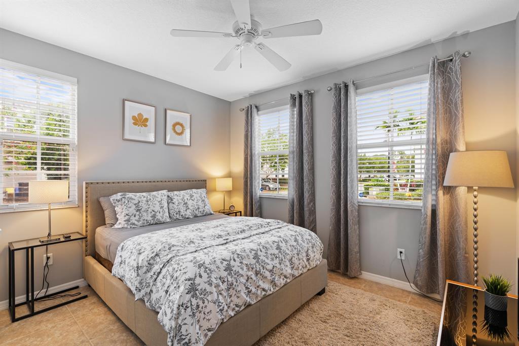 Located in the centrally located & gated community of Tara Cove is this rare 4 bedroom, 3.5 bathroom turn-key corner townhouse with complete hurricane-impact glass. Step in to the open living room which connects seamlessly to the kitchen & patio, perfect for entertaining. On the first floor, you will also find an en-suite bedroom, powder room & access to the garage. On the second floor is the spacious Master Bedroom, 2 additional bedrooms & the laundry closet. The Master Bedroom lacks no closet space with 2 walk-in closets and a large linen closet. The Master Bathroom is complete with dual sinks, a glass-enclosed shower and tub. Not to mention, the open patio is larger than most due to this being a corner unit. The community also features a pool, fitness center, guest parking & neighbors