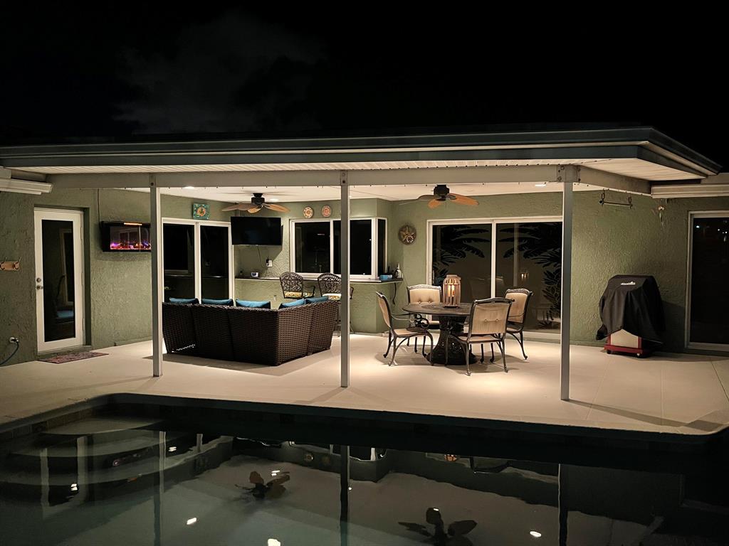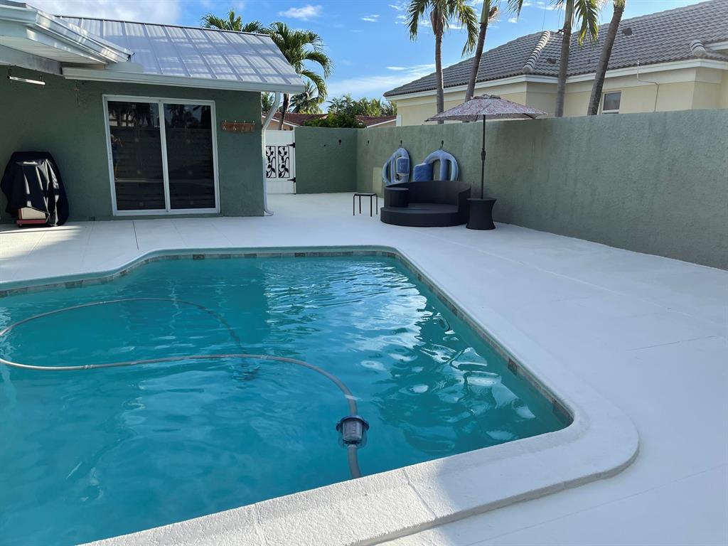 **PRIVATE POOL OASIS' surrounded by PALM TREES'. CUSTOM PRIVACY WALL FOR LARGE ENTERTAINING/ Corner oversized Lot with ocean access 1 block away Very upscale. 4 BED 2 BATHA rare OVERSIZED LOT with Saltwater pool. Extra large deck with covered entertaining area tv, fireplace and security cameras thru-out/ serving window from the kitchen.wood floors , Cabana bath door right off the pool. 4 bedrooms, 2 master size large bedrooms, All updated Hurricane proof windows, doors and screens. Newer roof.Private lighted grass area for animals around the side with updated stainless appliances, LG washer and dryer full size. Circular oversized driveway that allows plenty of guests ''RENT 4 X A YEAR 90 DAYS min,'' Sailfish Marina blocks away.