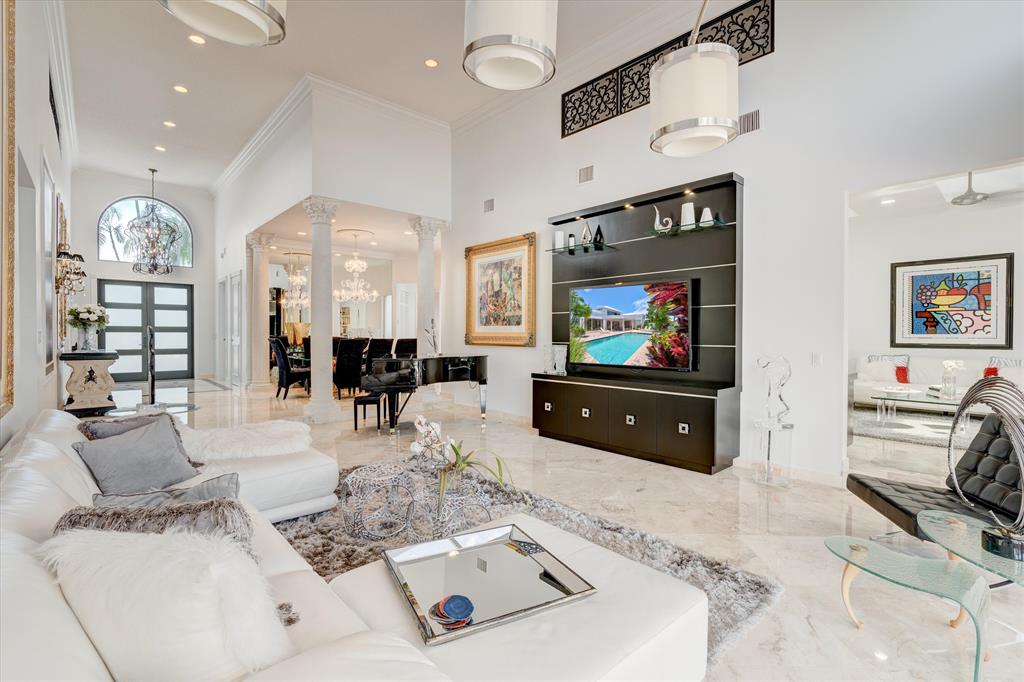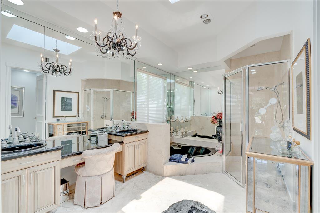 This one won't last long! Prepare to be awed by this spacious elegant one-story home with private pool and fabulous lake view, located in the highly sought-after Ascot subdivision of The Polo Club. A rare find, you can simply move right in to this beautifully designed, meticulously maintained house with 3 bedrooms, 4 full baths at nearly 2,900 sq ft. Soaring ceilings, an airy atrium and skylights allow tons of natural light. Features include a spacious gourmet kitchen with granite countertops and stainless-steel appliances, an open formal dining room and a Primary suite with pool and lake views, custom fitted dual walk-in closets and a luxurious Primary bath with dual sinks, vanity and separate shower and tub.