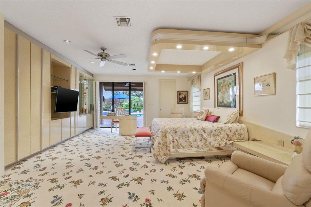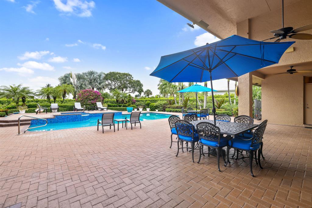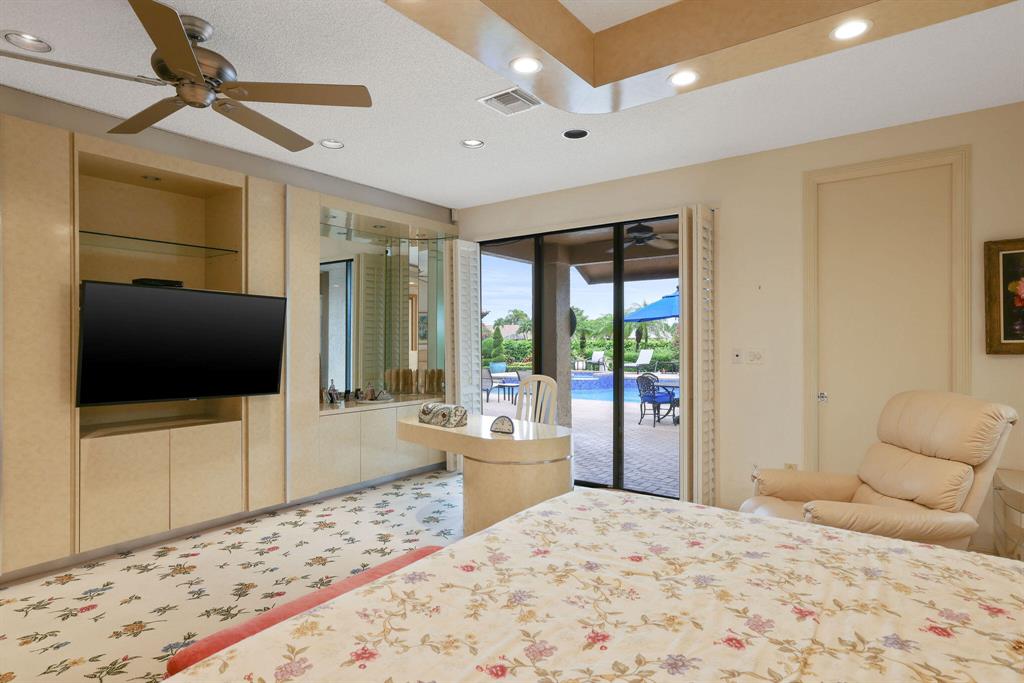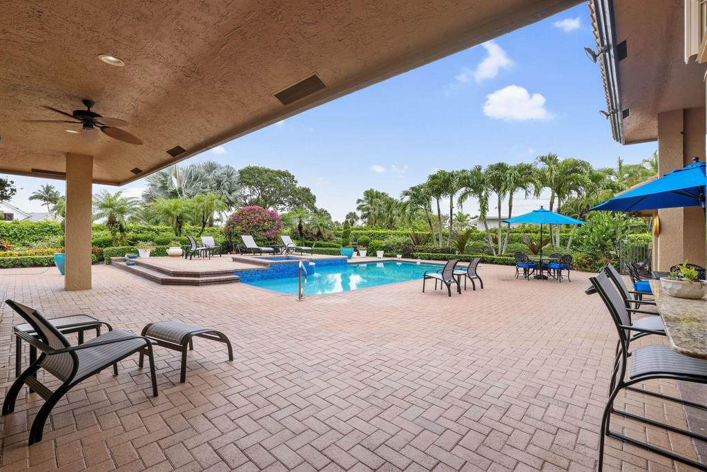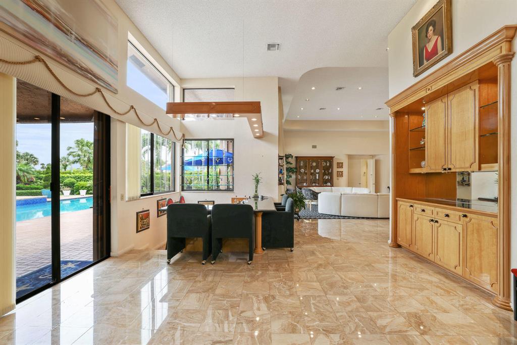 Enjoy expansive golf views from this 4 bedroom plus office, 5.1 bathroom home in the prestigious Bocaire Golf Club. This beautifully appointed light and bright home features volume ceilings, two master bathrooms, full house generator, a travertine circular driveway, and an oversized patio with a heated spa and pool surrounded by lush tropical landscaping. Entertain family and friends in the large living and dining area or at the built in bar. This home is ready for its next family.Bocaire is one of South Florida's top rated private clubs. The Kipp Schulties designed golf course boasts 7-thousand-yards, 7 different tee locations on every hole, and is home to both championship play and varying skill level players.