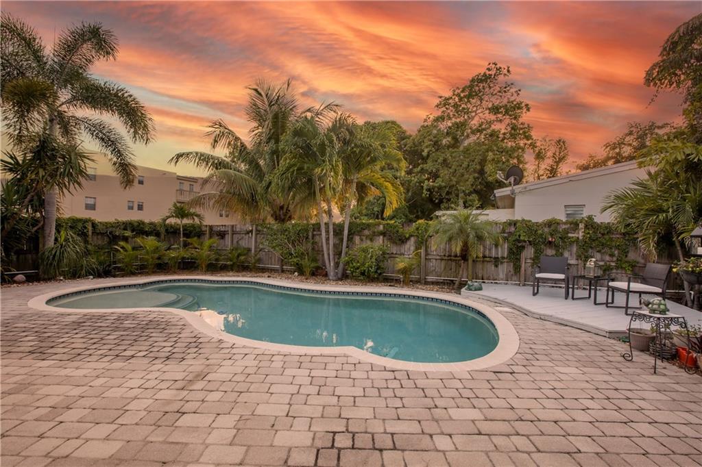 Stunning, freshly painted 3 bed/3 bath single-family home with heated pool. No HOA restrictions. Perfect short-term rental location, Airbnb or VRBO. Zoned multi-family-great income potential. Updates include stainless kitchen appliances, high-efficiency washer & dryer, tankless water heater, 2020 HVAC system, coupled with energy efficient impact windows & doors throughout. The 2019 roof is exactly what insurance companies want for maximum savings. Oversized master-suite can accommodate additional beds-sleep 10-11 with pull-out couch. A private-entry en-suite at the opposite end could be leased as a separate income unit with optional kitchenette and secondary laundry room. Situated on a fenced corner lot with circular drive, room to store boat or trailer plus a shed for tools and toys.