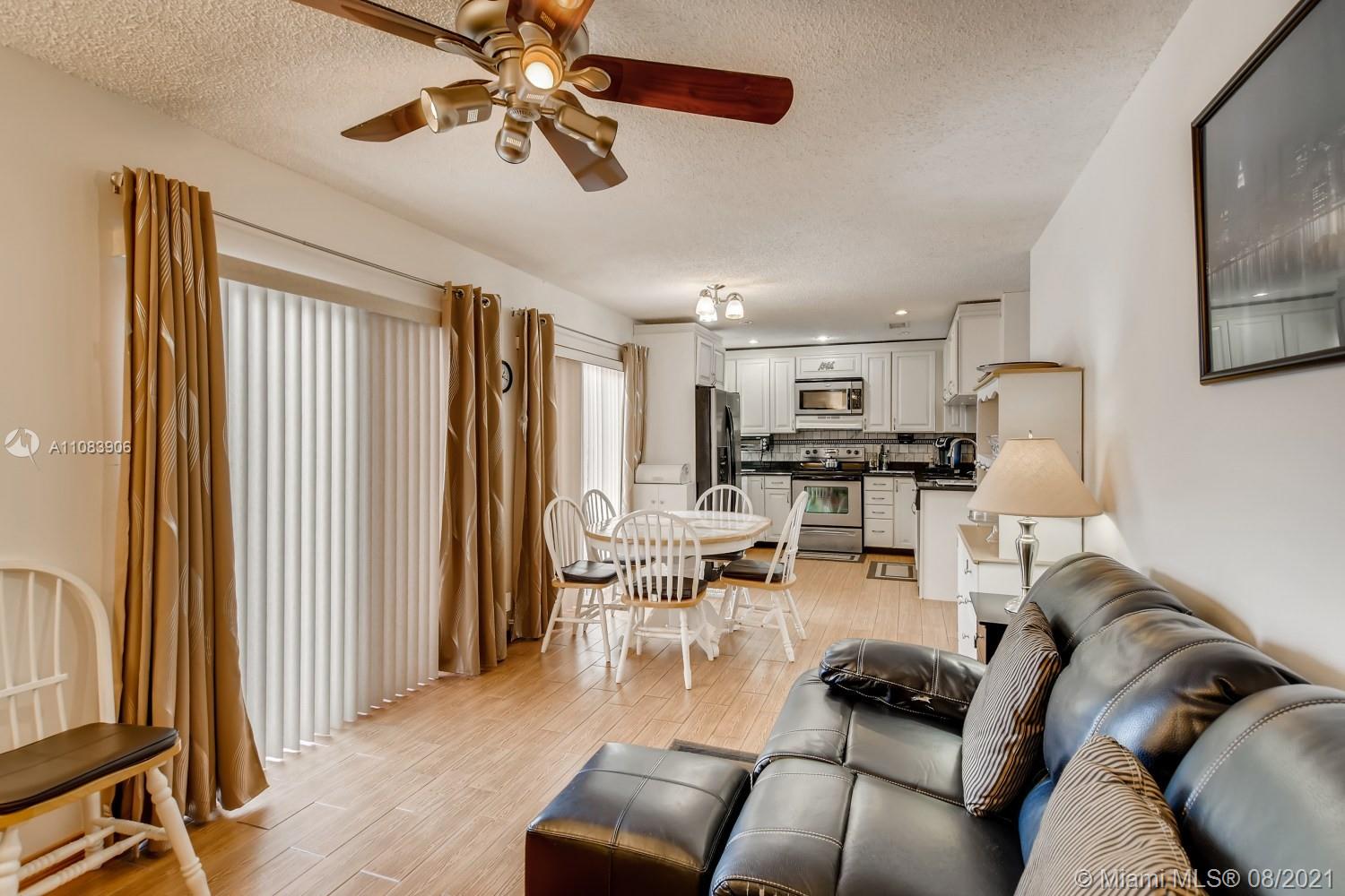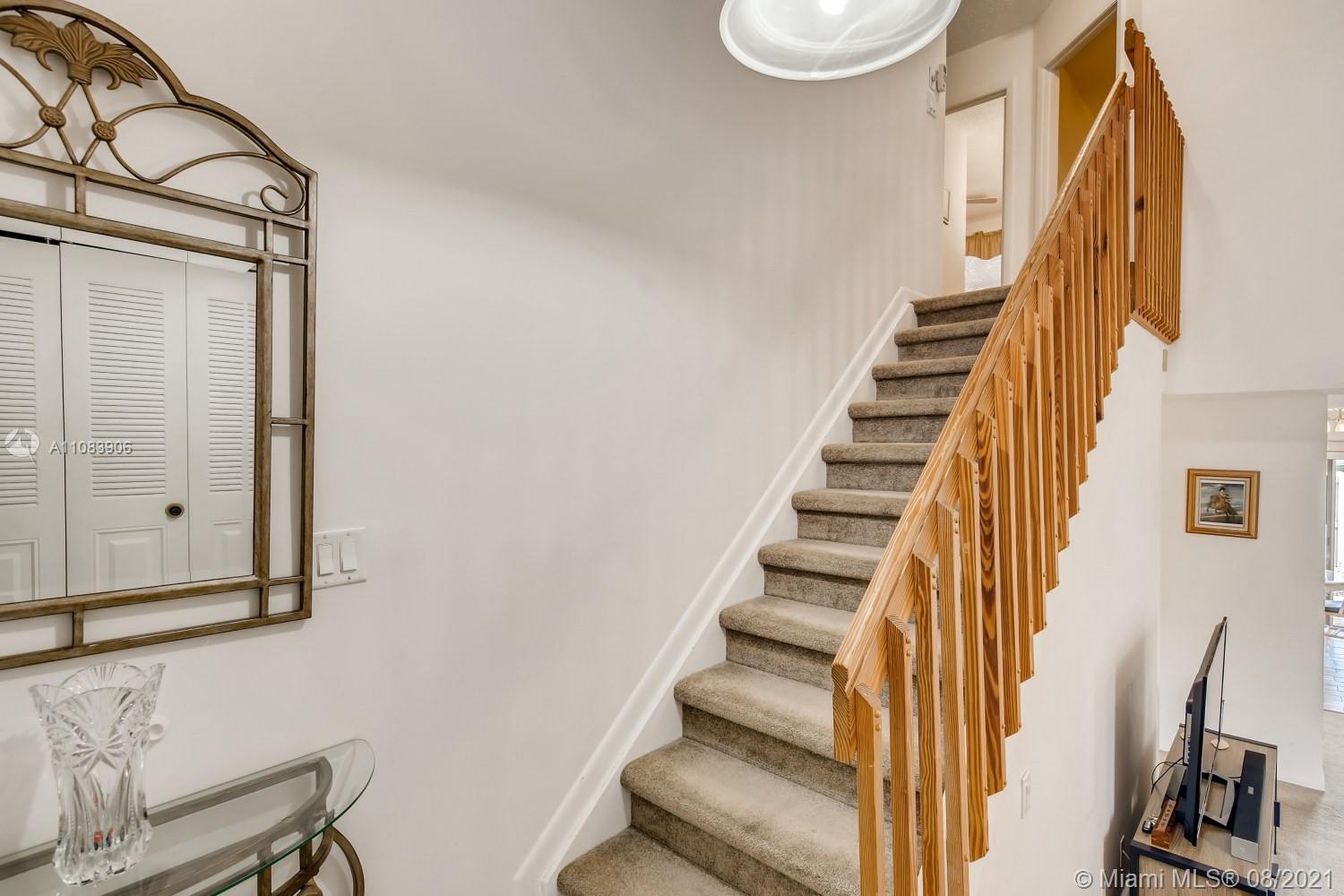 Fantastic 3 bd/ 2.5 ba two-story home with stainless steel appliances, a peninsula bar, granite countertops and a side dining nook with built-in cabinetry. A side living area stretches beyond the kitchen and runs across the rear of the home. bedrooms on the second level — the primary has plush carpeting, custom built armoire, ensuite bathroom with tiled standing shower, granite vanity and massive walk-in closet with custom shelving. The secondary bedrooms are also carpeted. Paradise waits in your own backyard; find yourself amongst the palms and lush, tropical vegetation on the paver patio as you entertain or enjoy the solitude — a surrounding fence ensures your privacy. Roof 2012, AC 2020, Water Heater 2003. HAS HOA.