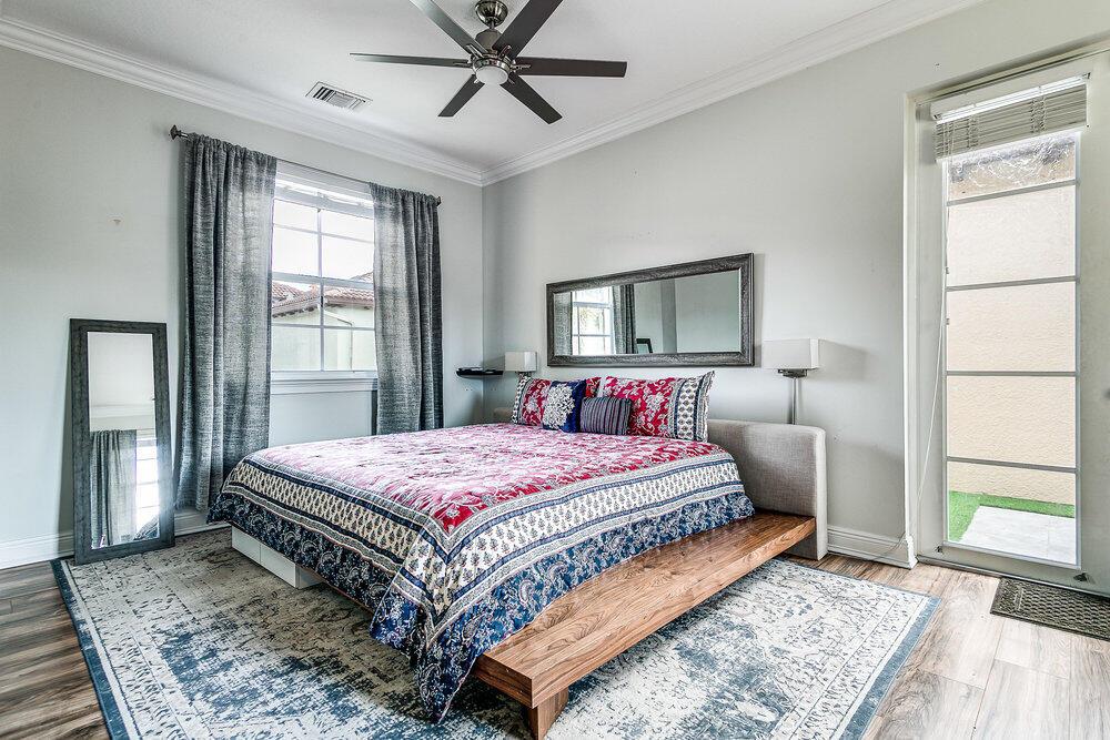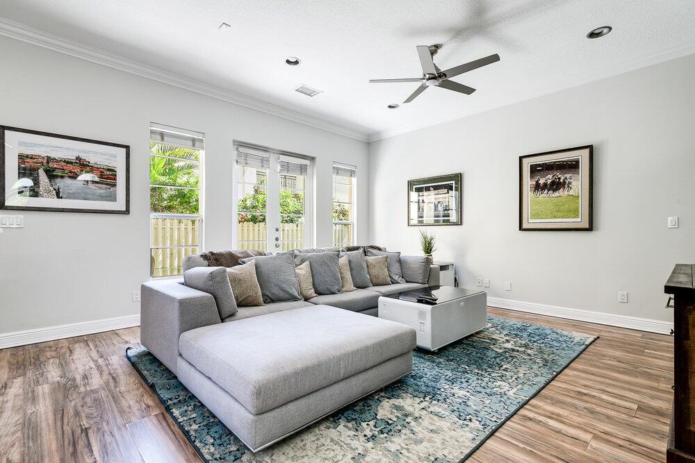 Welcome to one of the most beautiful townhomes in the gated community of Royal Poinciana! Built in 2007, this is a beautiful 2-story, 3 Bed, 2.5 Bath townhome with full-sized 2-car garage. This is a rarely available end unit which allows for additional privacy and exposure to light. Live in Boca while only residing 6 minutes away from Delray! Just minutes from downtown Boca Raton, Delray and the beach. From the moment you enter, your gaze veers up toward the 22' foyer entry and then to the spacious, open concept main floor and white kitchen. Beautifully appointed space for entertaining or just relaxing with friends and family. Windows on 3 sides of this expansive townhome. French doors lead to a private fenced backyard with plenty of room for pets & grilling. Turf has been laid for a