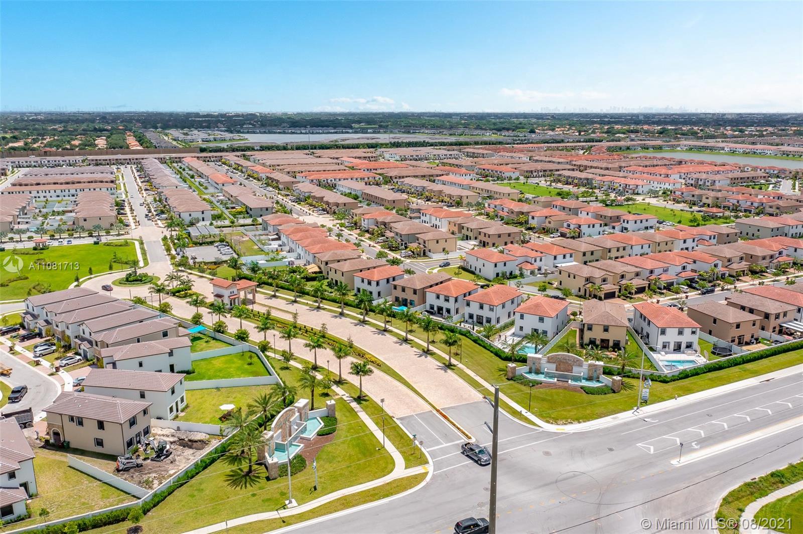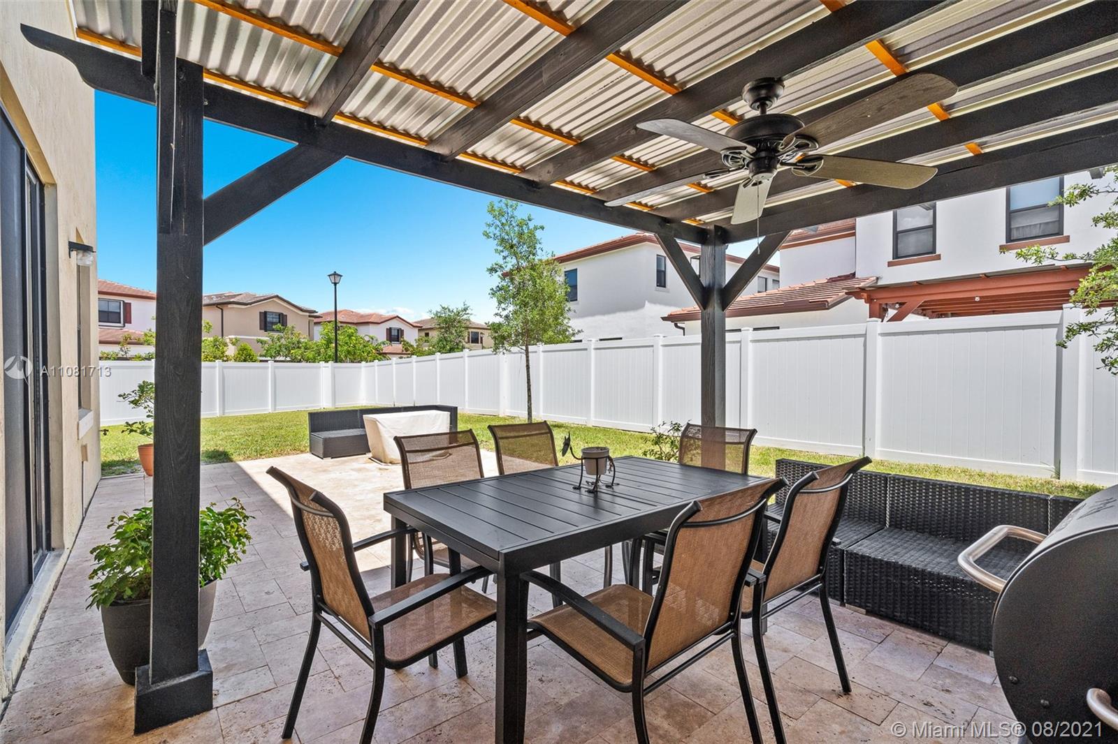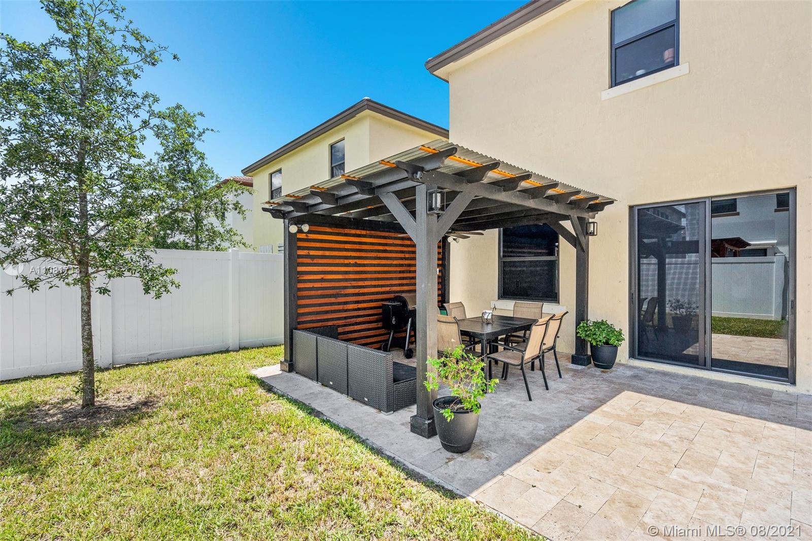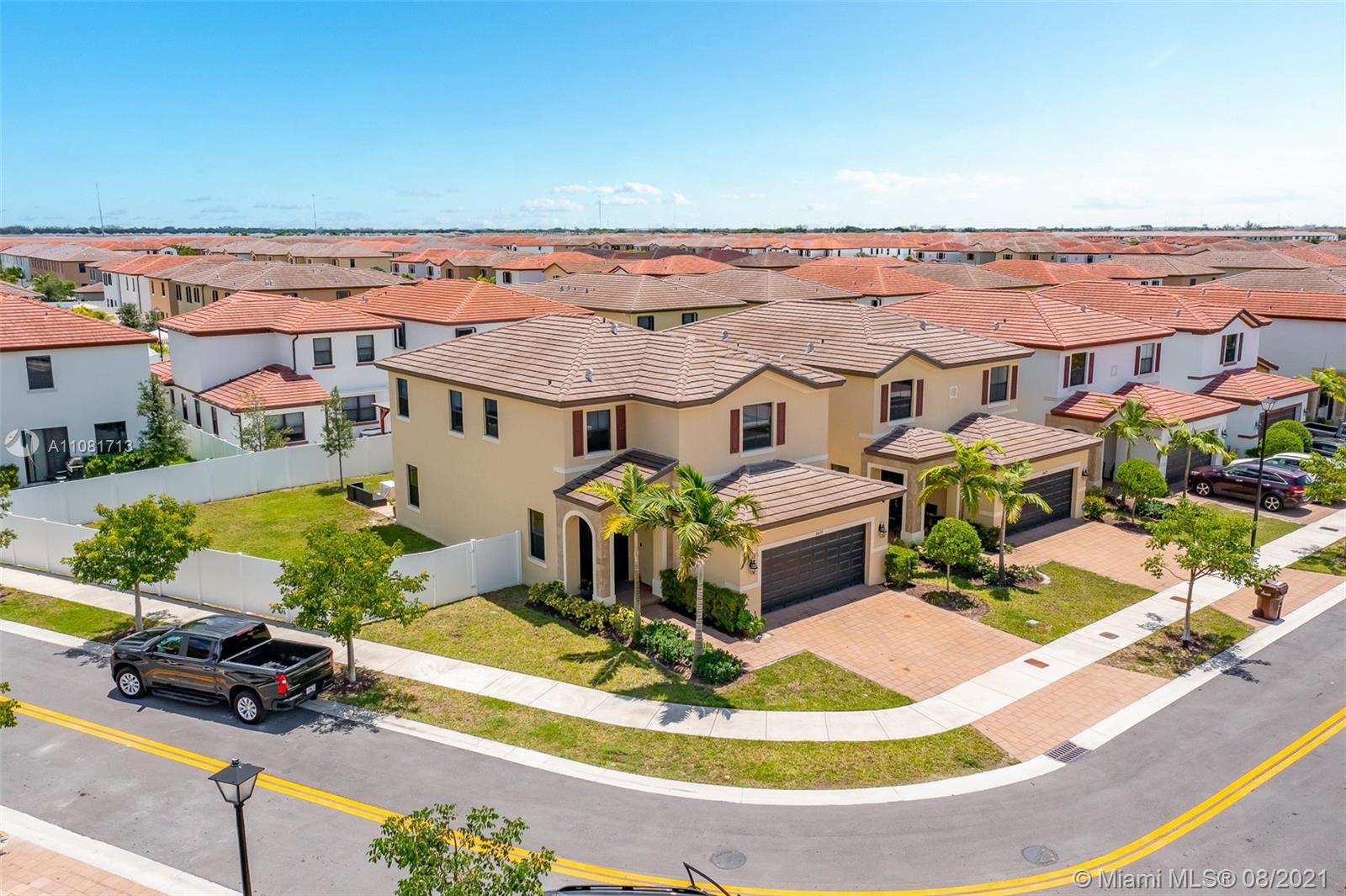 This gorgeous 3 bedroom 2.5 bath smart home built in 2019 is inside the gated community of Aquabella. The home boasts over 2,400 sq. ft. of living space and an almost 6,000 sq. ft. lot. All smart connectivity is through the Amazon Echo Show (Ring, Honeywell AC). Porcelain tile throughout the 1st floor. What a treat to have a laundry room upstairs with front loading Samsung washer & dryer! This corner lot has a big backyard with enough room for a pool with constant sunshine. Travertine patio with pergola included in the sale. The kitchen has a pantry and stainless steel appliances. Hurricane shutters included. The Aquabella community has pristine amenities such as a gorgeous resort-style pool with cabanas, gym, deluxe clubhouse and splash park for the kiddies! CHECK OUT THE VIRTUAL TOUR!