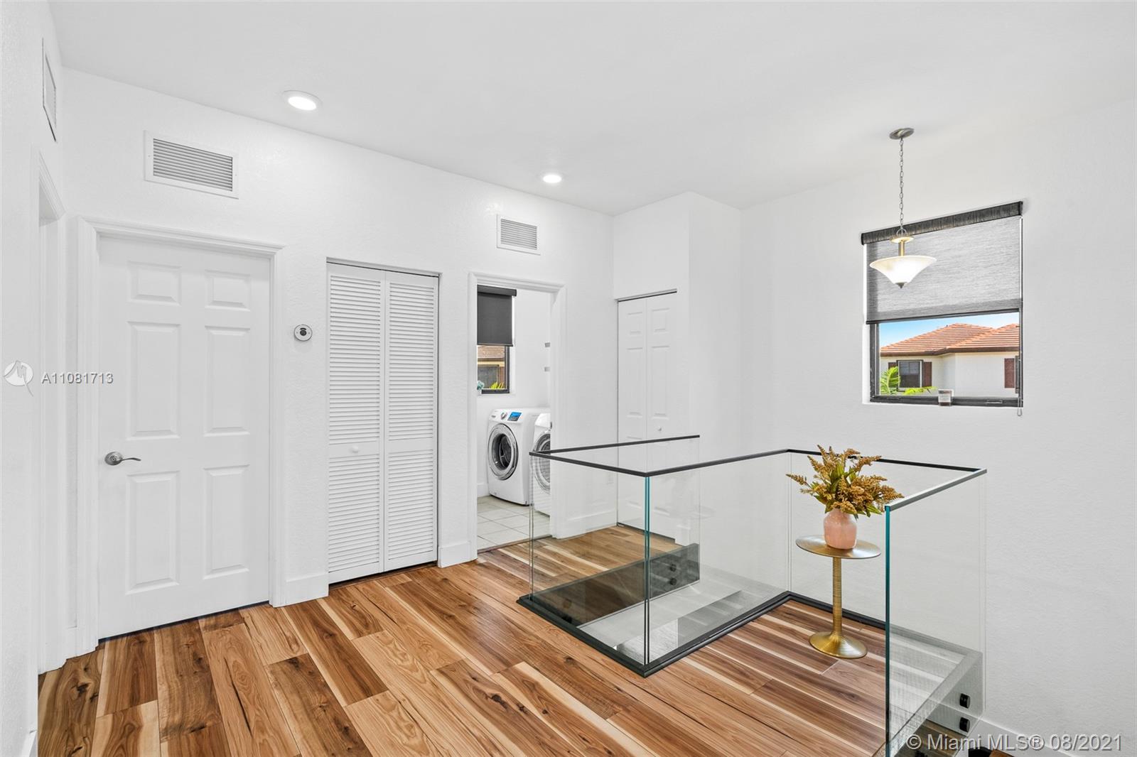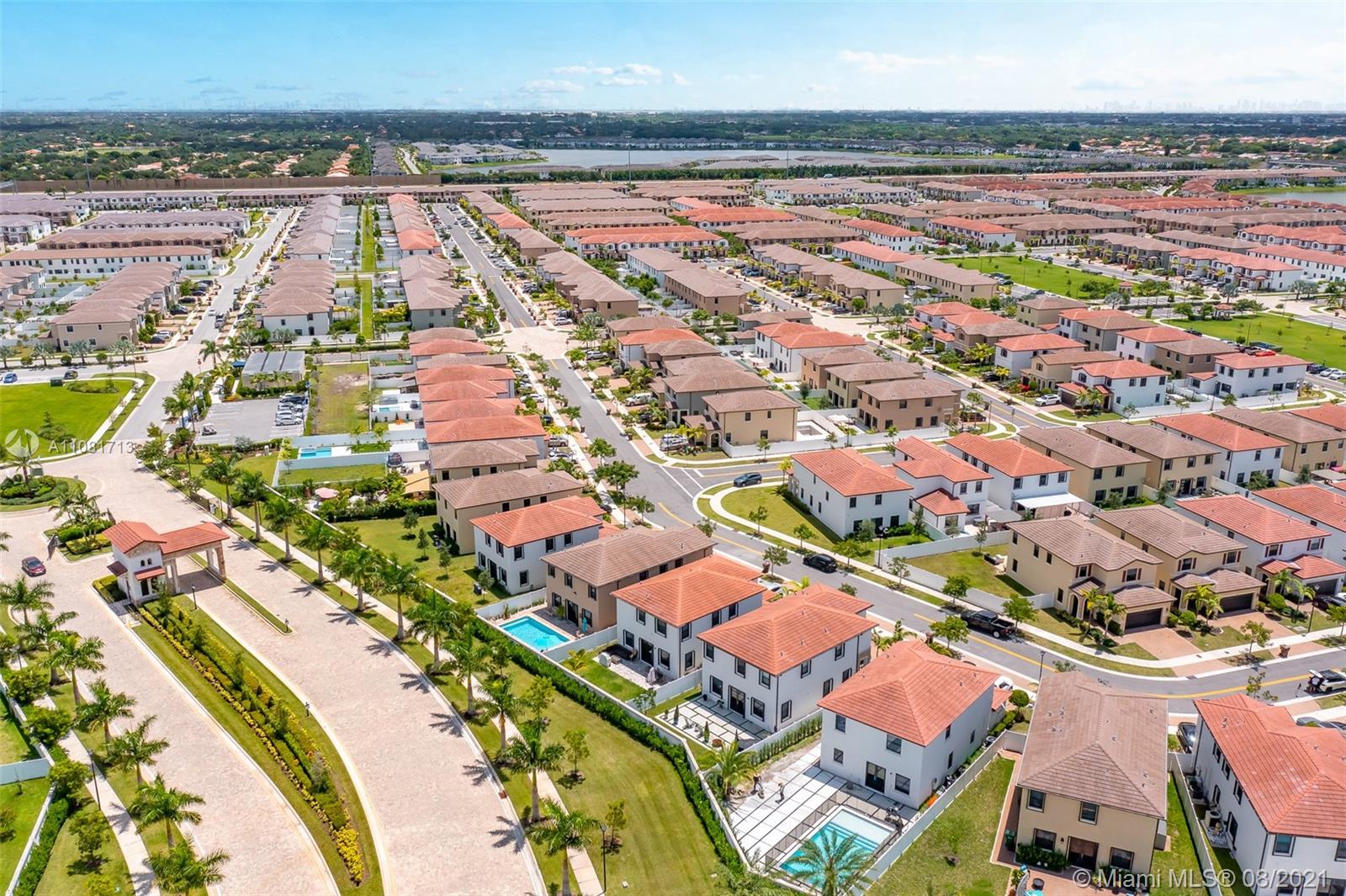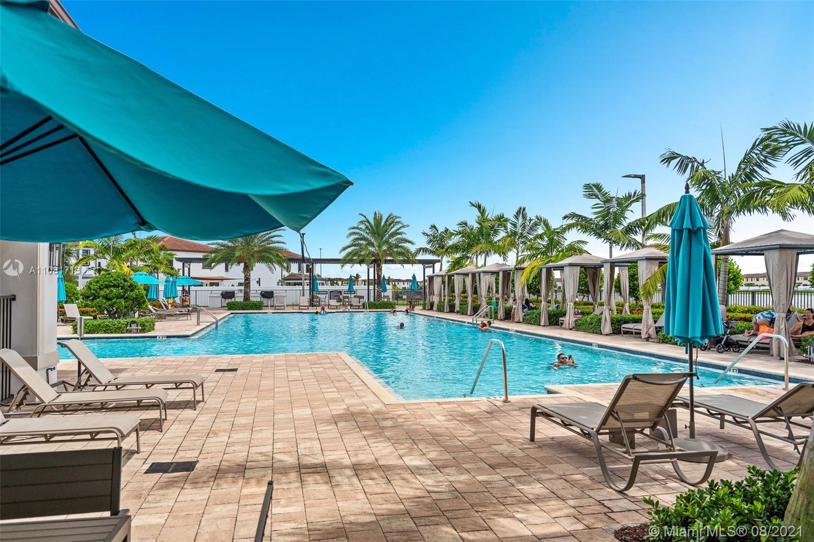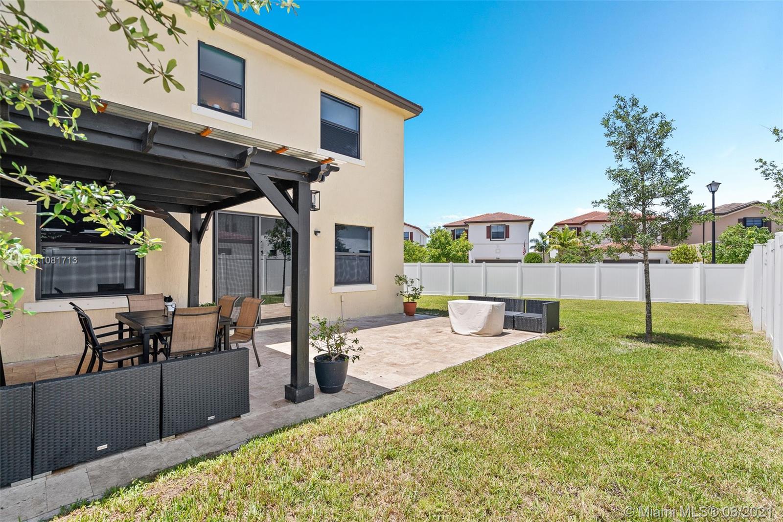 This gorgeous 3 bedroom 2.5 bath smart home built in 2019 is inside the gated community of Aquabella. The home boasts over 2,400 sq. ft. of living space and an almost 6,000 sq. ft. lot. All smart connectivity is through the Amazon Echo Show (Ring, Honeywell AC). Porcelain tile throughout the 1st floor. What a treat to have a laundry room upstairs with front loading Samsung washer & dryer! This corner lot has a big backyard with enough room for a pool with constant sunshine. Travertine patio with pergola included in the sale. The kitchen has a pantry and stainless steel appliances. Hurricane shutters included. The Aquabella community has pristine amenities such as a gorgeous resort-style pool with cabanas, gym, deluxe clubhouse and splash park for the kiddies! CHECK OUT THE VIRTUAL TOUR!