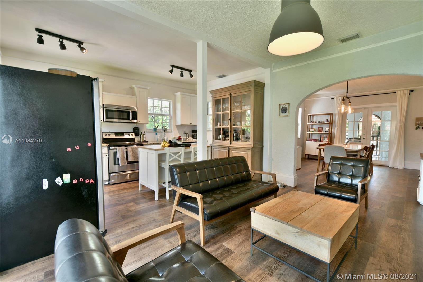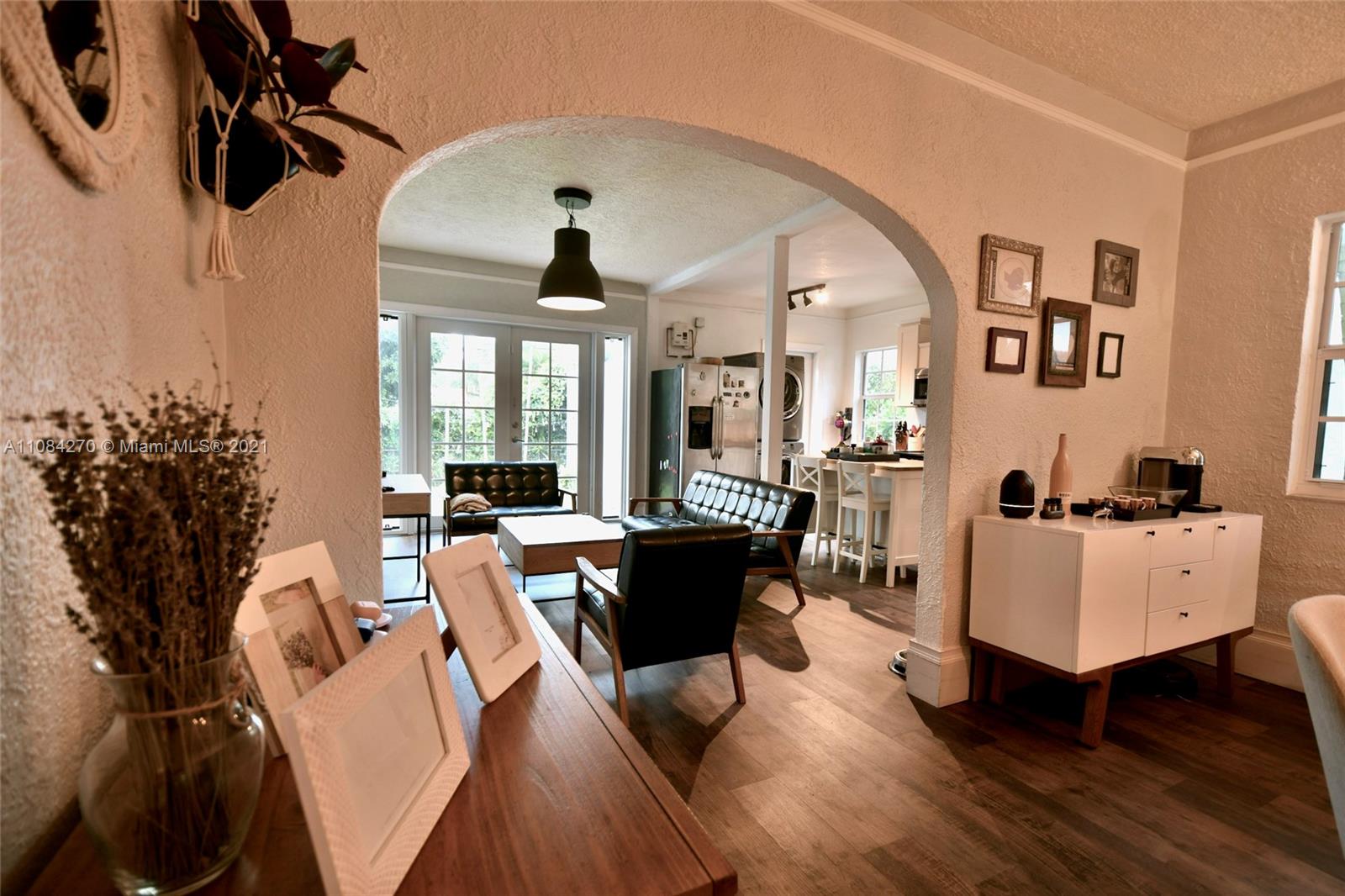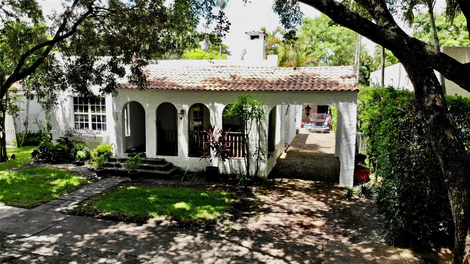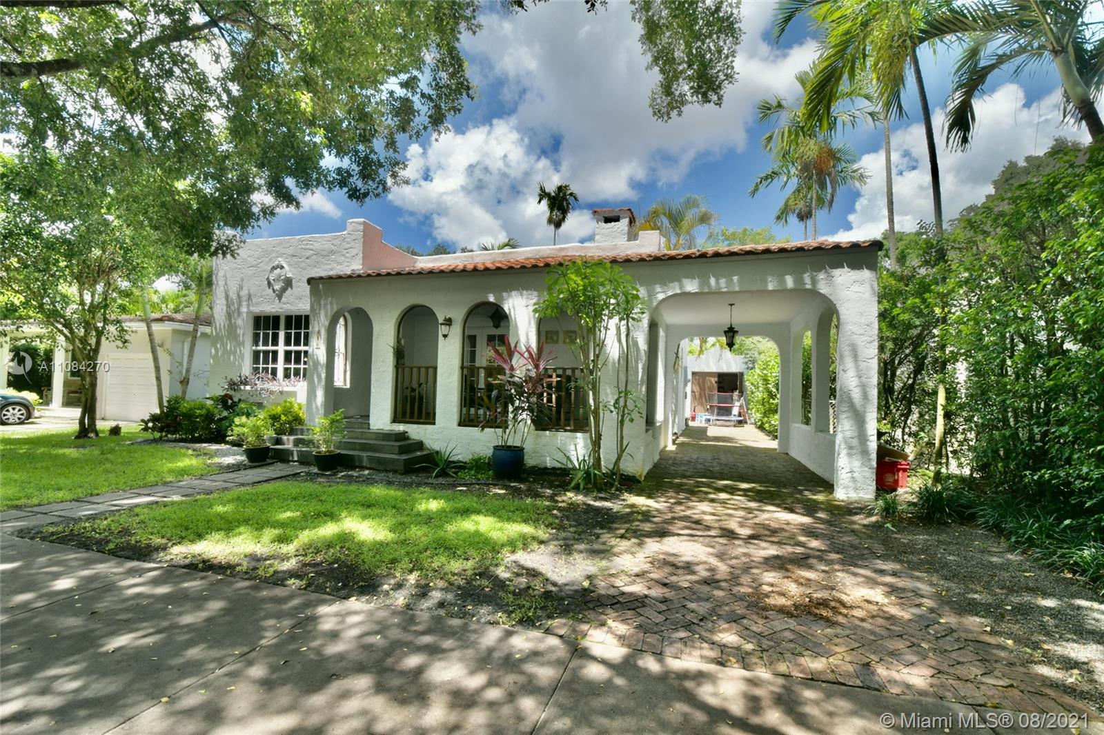 BACK TO THE MARKET. Historic property in the iconic city of Coral Gables, this old Spanish house built in 1924 is an authentic relic in the heart of Miami with 2 bedrooms and 1 bathroom delicately restored, taking care of its original structure, covered entrance porch, living room with a wood burning fireplace, dining room, remodeled kitchen with island, stainless steel appliances, hardwood floors, French doors, high impact windows, detached garage converted to office / storage room, fabulous patio with fruit trees for family enjoyment. Don't miss out on the opportunity to live in a home that tells its own story.