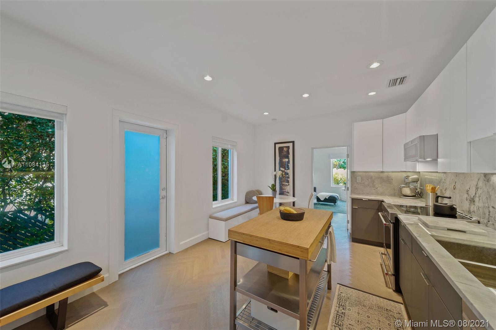 Stunning Miami Shores residence with absolutely gorgeous custom finishes, high ceilings, and beautiful landscaping, with no expense spared! Detached converted garage w/plumbing is a great flex space for a gym or artist studio. Home has 2 bedrooms/ 1 bath on one side, and a convertible 3rd bedroom or family room + 2nd bathroom after kitchen leading to a charming screened patio. See floor plan in photos. Lovely tiled foyer leads into the main living area with recently installed beautiful oak wood flooring in a herring bone pattern. Contemporary kitchen with top of the line appliances and ravishing dolomite backsplash. New roof w/ tapered insulation for main house & studio. Home has impact windows & doors, new electrical panel, & carport electrical for your electric car charger. Must see!
