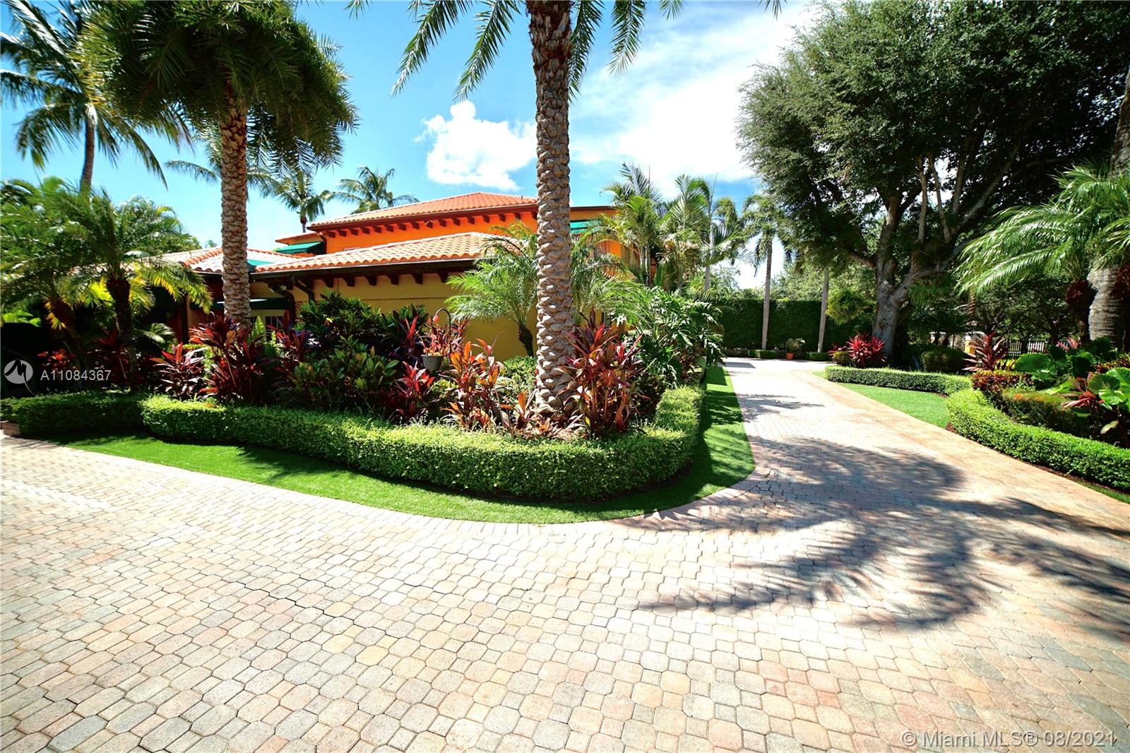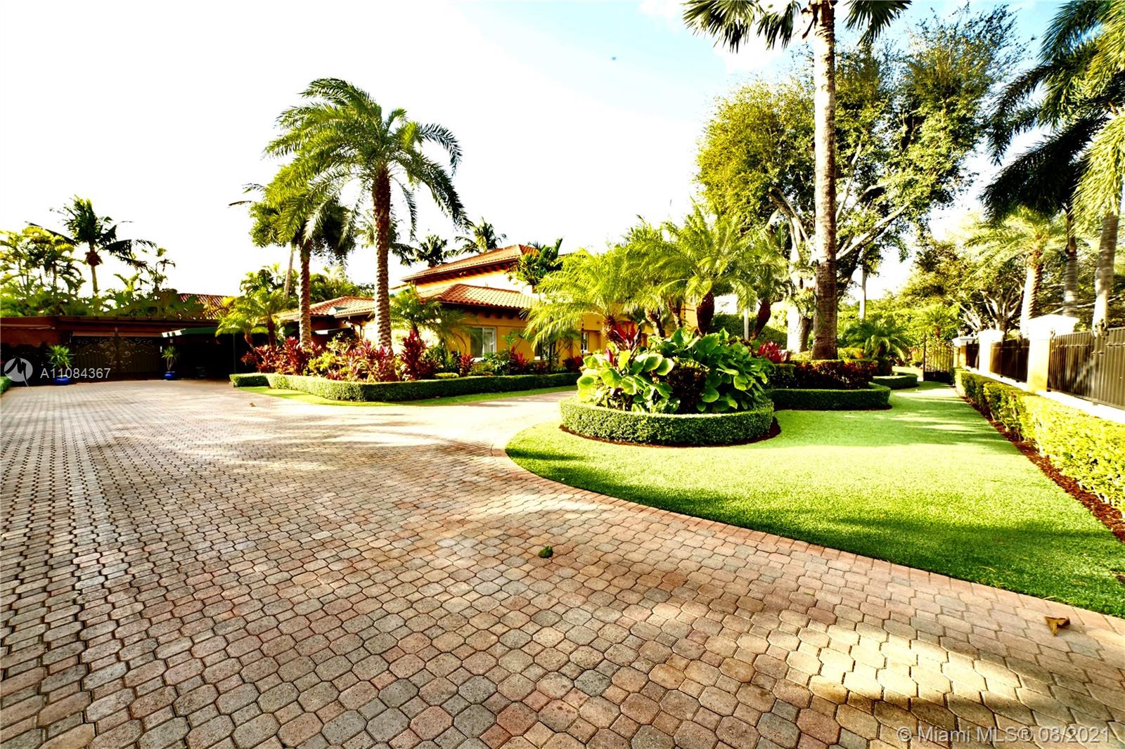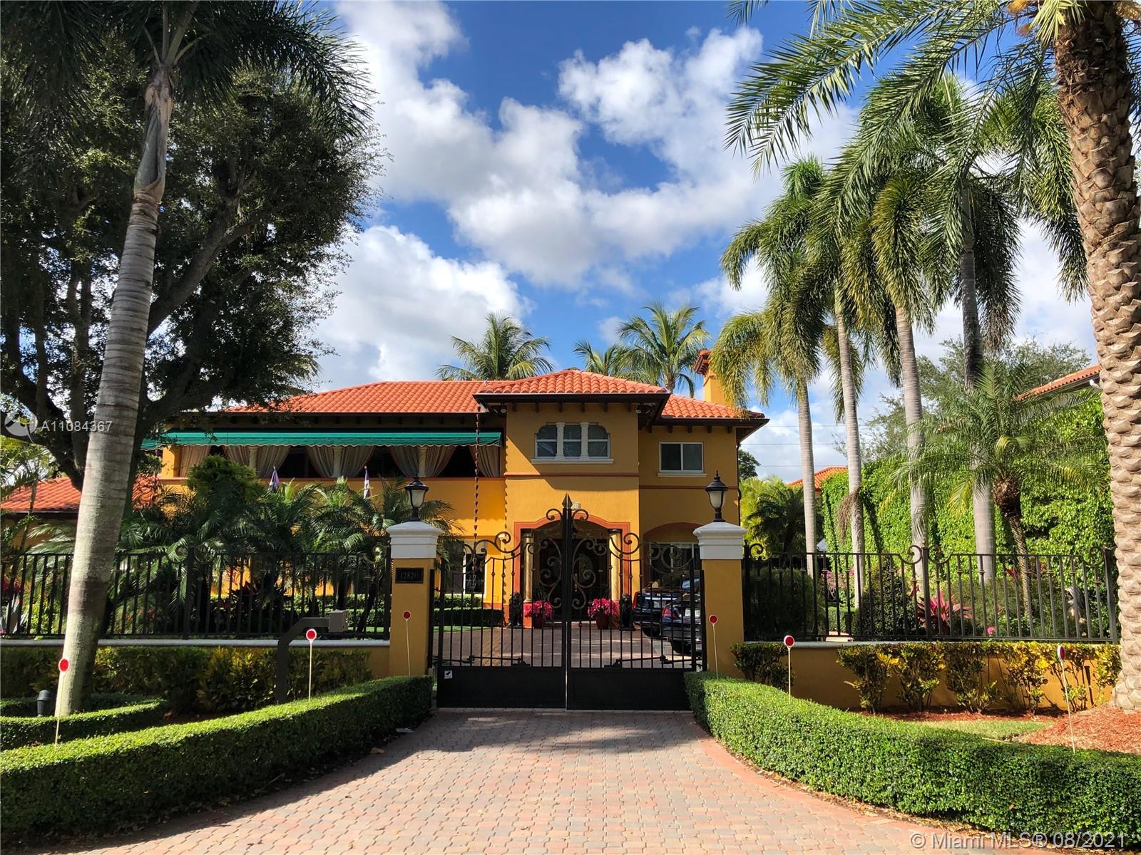 Elegant two-story Mediterranean style gated home located on a private road in prestigious Pinecrest. This home features a formal living and dining room area with fireplace, remodeled gourmet kitchen with center island, marble countertops, and high-end appliances. An adjacent breakfast and dining area is perfect for family gatherings during the early morning or dinner time. The master suite features a sitting area and fireplace. This home is outfitted with LED lighting throughout, security cameras, impact windows and doors, 2 year old roof, high-efficiency A/C, landscape lighting, outdoor speakers, and a covered terrace overlooking the heated pool and jacuzzi. The property is impeccably maintained and is lushly landscaped. Close to Parks, The Falls Mall and restaurants.