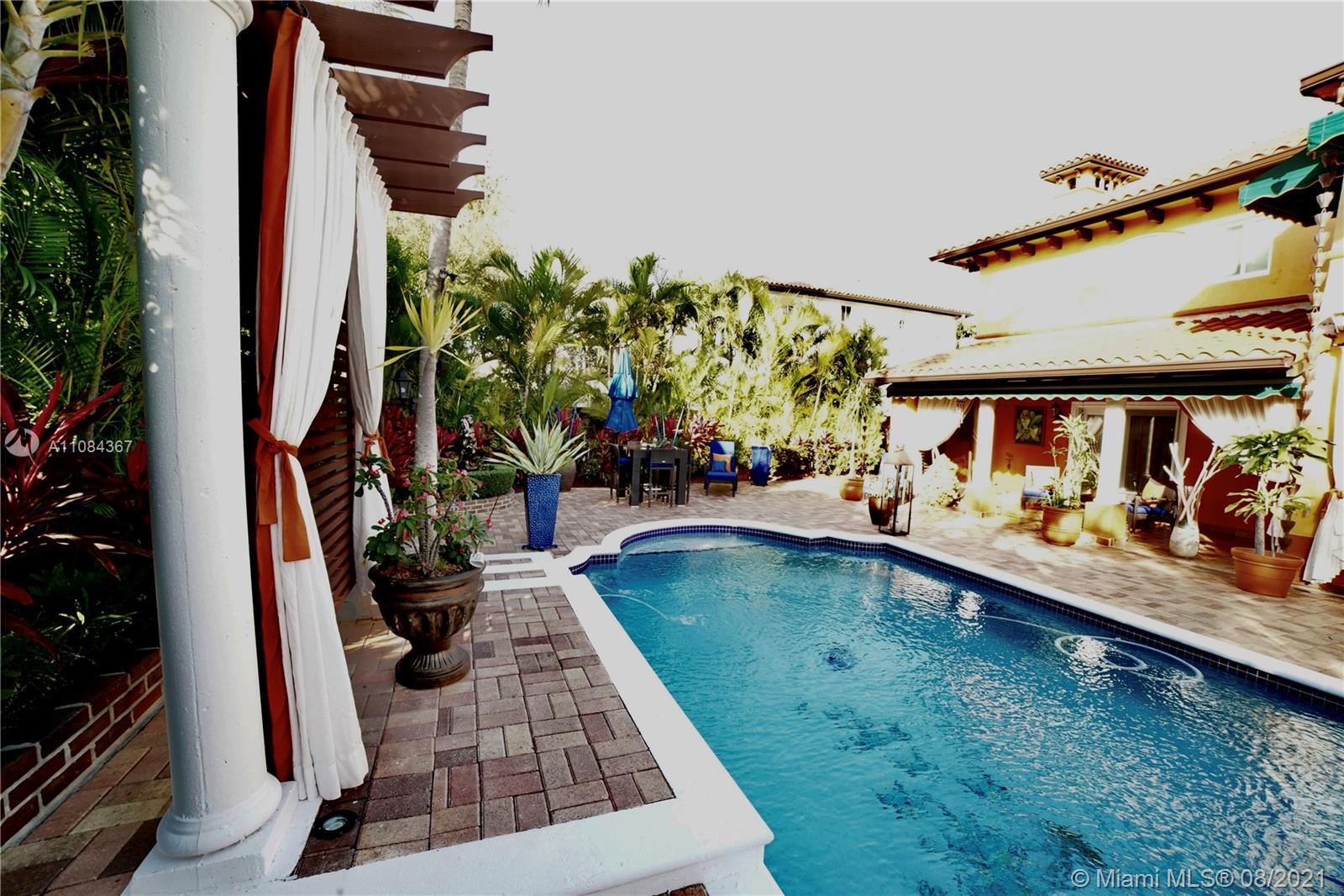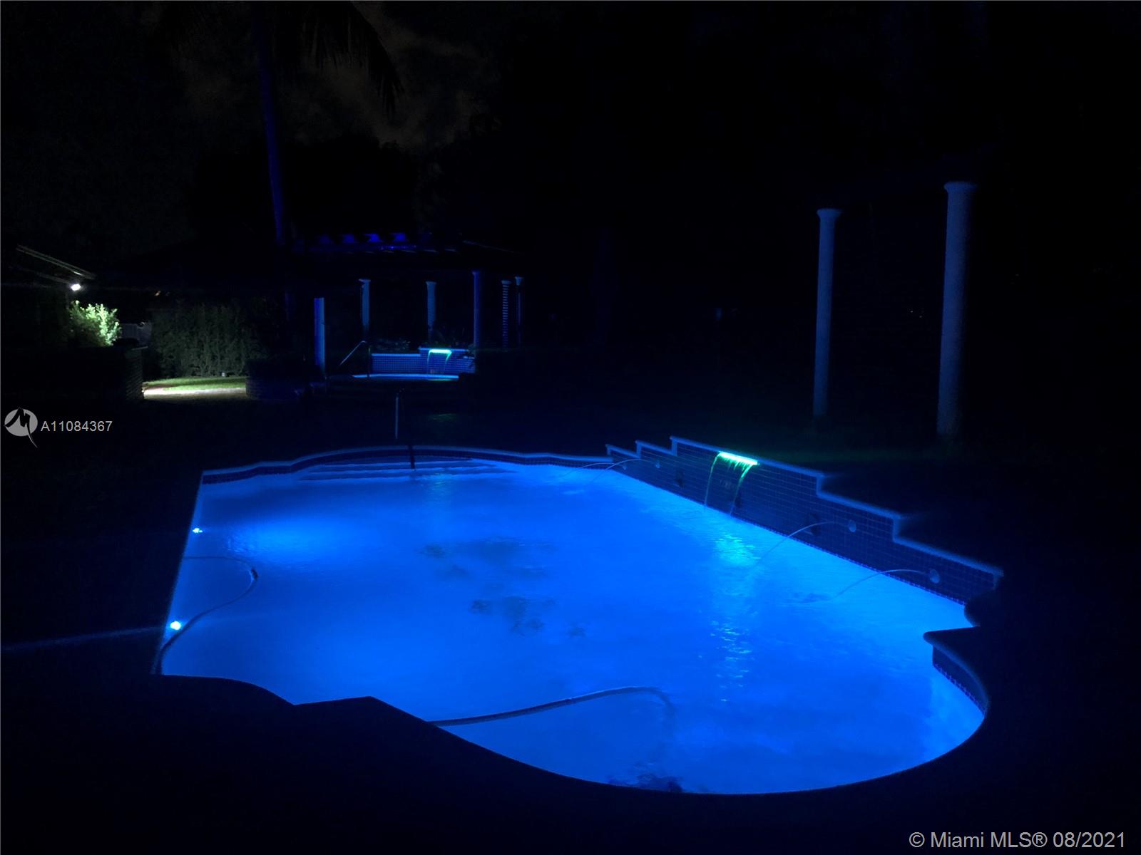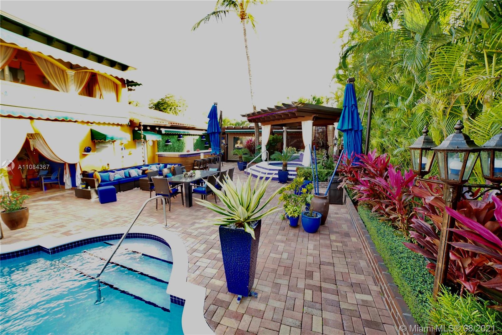 Elegant two-story Mediterranean style gated home located on a private road in prestigious Pinecrest. This home features a formal living and dining room area with fireplace, remodeled gourmet kitchen with center island, marble countertops, and high-end appliances. An adjacent breakfast and dining area is perfect for family gatherings during the early morning or dinner time. The master suite features a sitting area and fireplace. This home is outfitted with LED lighting throughout, security cameras, impact windows and doors, 2 year old roof, high-efficiency A/C, landscape lighting, outdoor speakers, and a covered terrace overlooking the heated pool and jacuzzi. The property is impeccably maintained and is lushly landscaped. Close to Parks, The Falls Mall and restaurants.