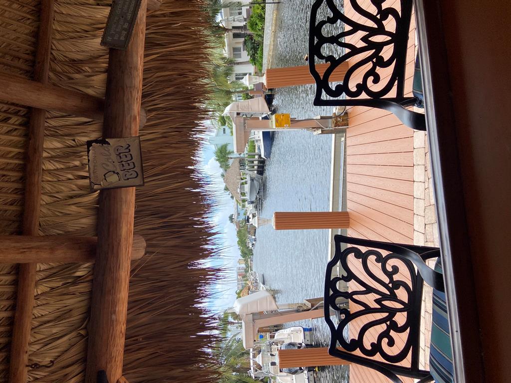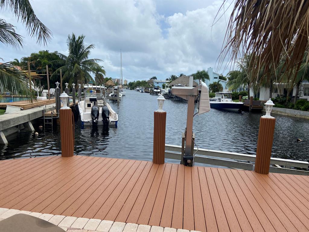NEWLY LISTED Renovated waterfront property with long canal views with ocean access. This beautifully landscaped 4/3 has a pool w/ spa, tiki bar with electric and water, covered rear patio with a large area for entertaining. New dock with 10,000 lb boat lift. Circular driveway for all of your guests. Home comes fully furnished with a remodeled kitchen and baths. Bamboo flooring in the bedrooms. All windows are impact. Tile roof 10 years old, flat roof 4 years old. A/C 5 years old. Gas service for the stove, dryer, tankless water heater and pool heater. 5 minutes to the beach and easy access to the highway. Close to dining, shopping and entertainment. Send your offer before its gone!!