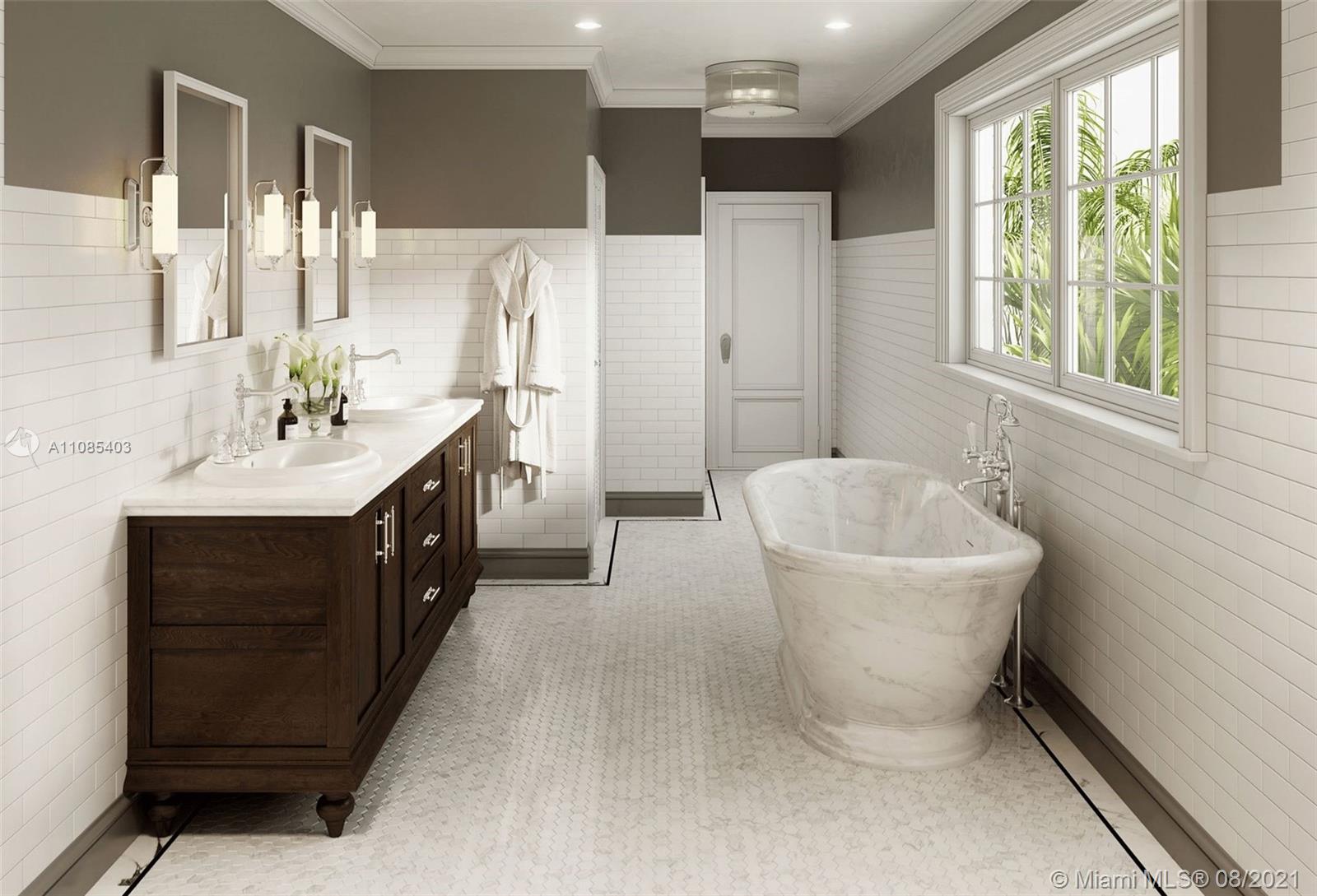 New, 5,000 sq.ft 5 Bed 6.5 Bath. Situated on the grandest lot in Mid-Beach, this 3-story home was originally built in 1925 by Carl Fisher, who selected its 12,600 pie-shaped parcel for its unique location; directly on the Miami Beach Golf Course and overlooking Par-3 Park. This contemporary Mediterranean consists of almost entirely new construction while preserving the prominent façade and character of the original home. Ideal layout of 4 beds up, with en-suite baths. Expansive master suite enjoys golf course & skyline views. A huge great room opens to pool area & cabana. Formal paneled study, chef’s kitchen, & separate guest suite tucked away complete the main level. Large semi-circular driveway + 1 car garage provide for excellent parking. Mid 2022 completion & chance to pick finishes.
