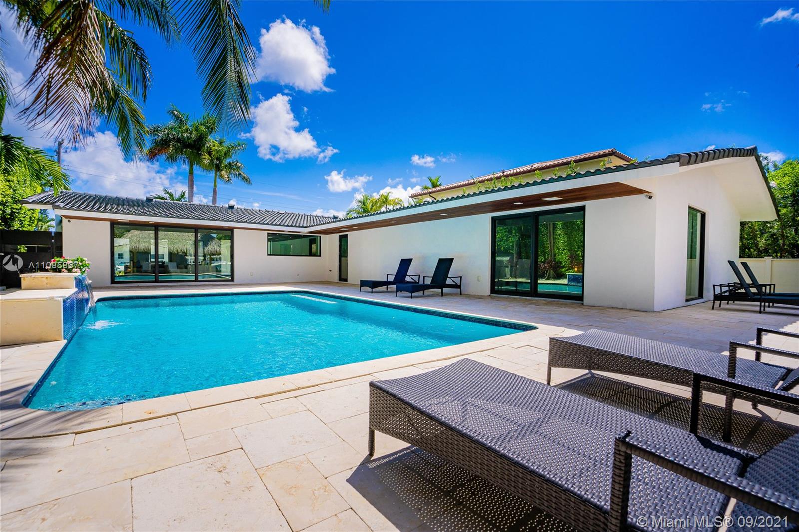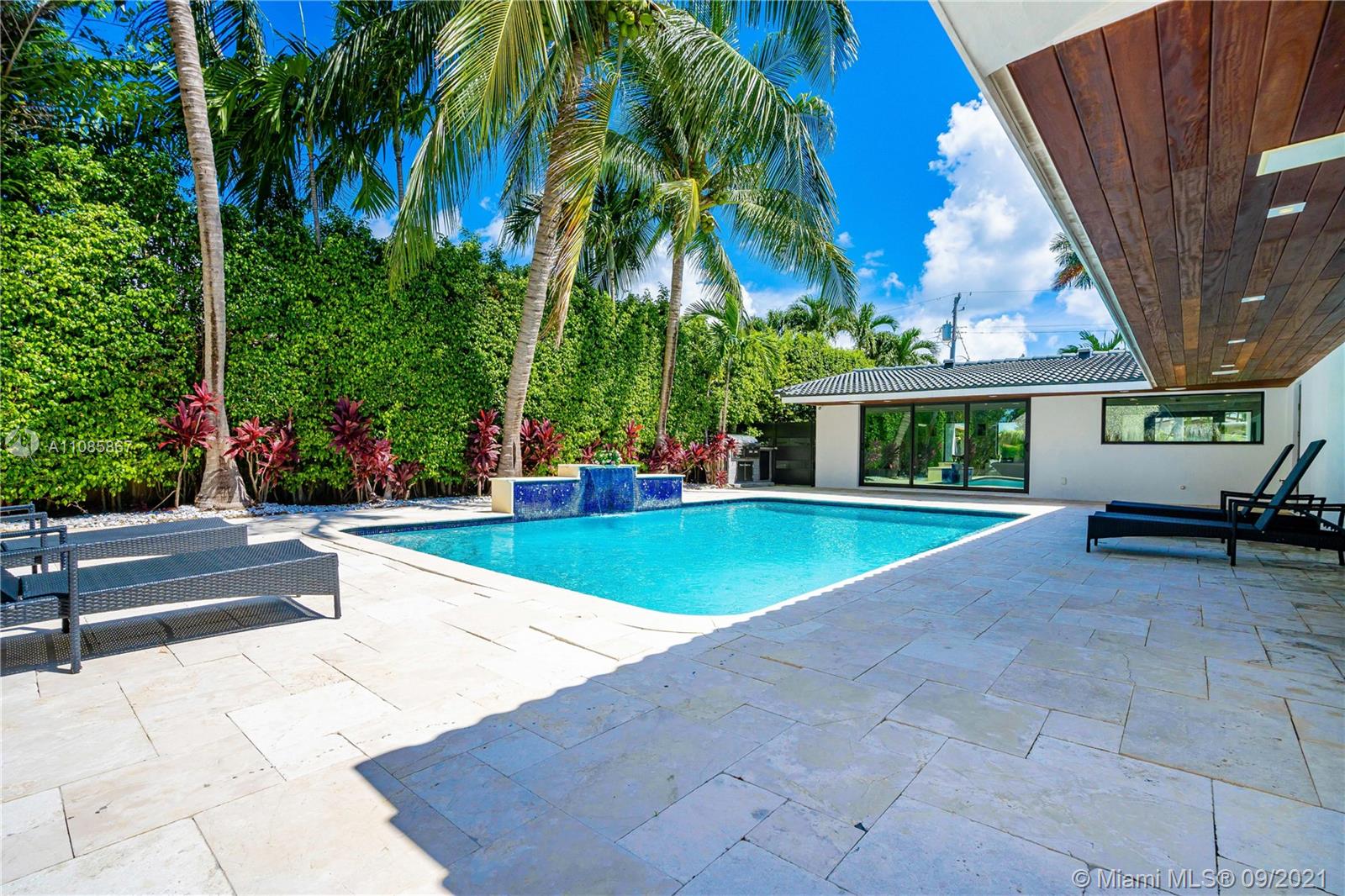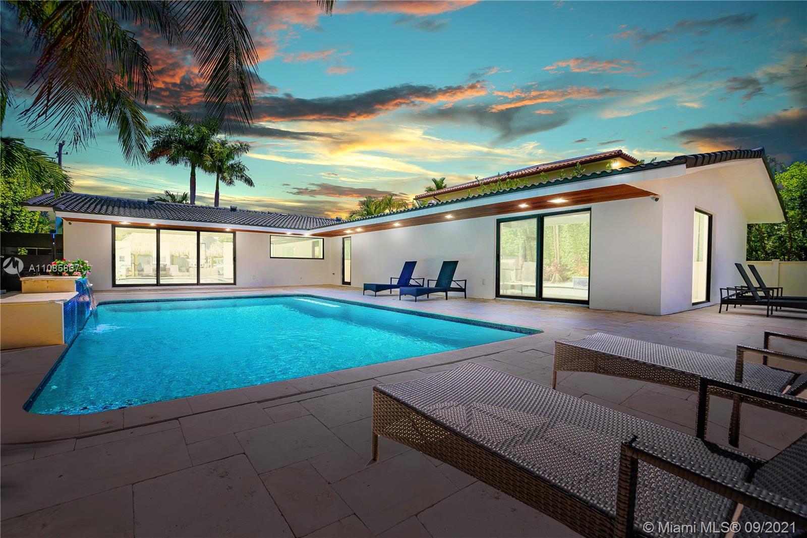 Introducing waterfront contemporary living located in the exclusive San Souci Estates. A truly modern home situated on a 9,375 square foot lot with 75 feet of deep waterfront direct ocean access, and over 2,700 square feet of luxurious living space. The home was completely renovated in 2019 , and intricately thought out to include everything you could ever want, such as all new updated electrical wiring, plumbing, AC, new hurricane SMART windows and doors, Italian designed kitchen by Cesar with new high end appliances, Italian internal doors and bathroom cabinets. The generous outdoor area provides you with the ultimate entertaining space, which includes a re-roofed Tiki hut, built-in BBQ and a 2019 15,000 lb boat lift. This is the ultimate boaters dream home.