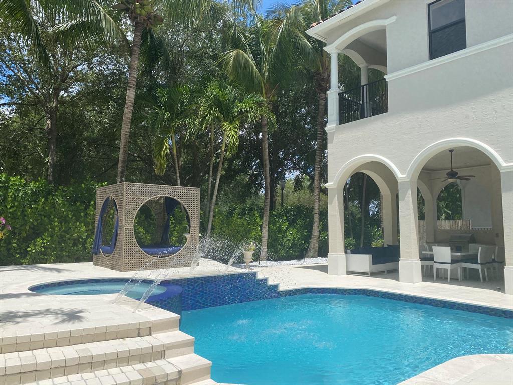 Magnificent estate home with a lush back yard complete with a gorgeous upgraded fountained salt water pool and hot tub, LED lighting, and a summer kitchen. Hurricane impact windows throughout. Main level boasts an expansive formal living room, dining room with wine cellar, in-law suite and a dedicated large movie room. A Stunning castle-like wrought iron spiral staircase takes you to the large upstairs loft area and 5 bedrooms including a master suite with his and her bathrooms and closets. The Oaks at Boca Raton is the epitome of lavish country club living without the country club dues. The community has European charm with a tennis center, pro-shop, basketball courts, a restaurant, fitness center with spa, a gorgeous clubhouse/kid club area, and la lavish community pool with cabanas.